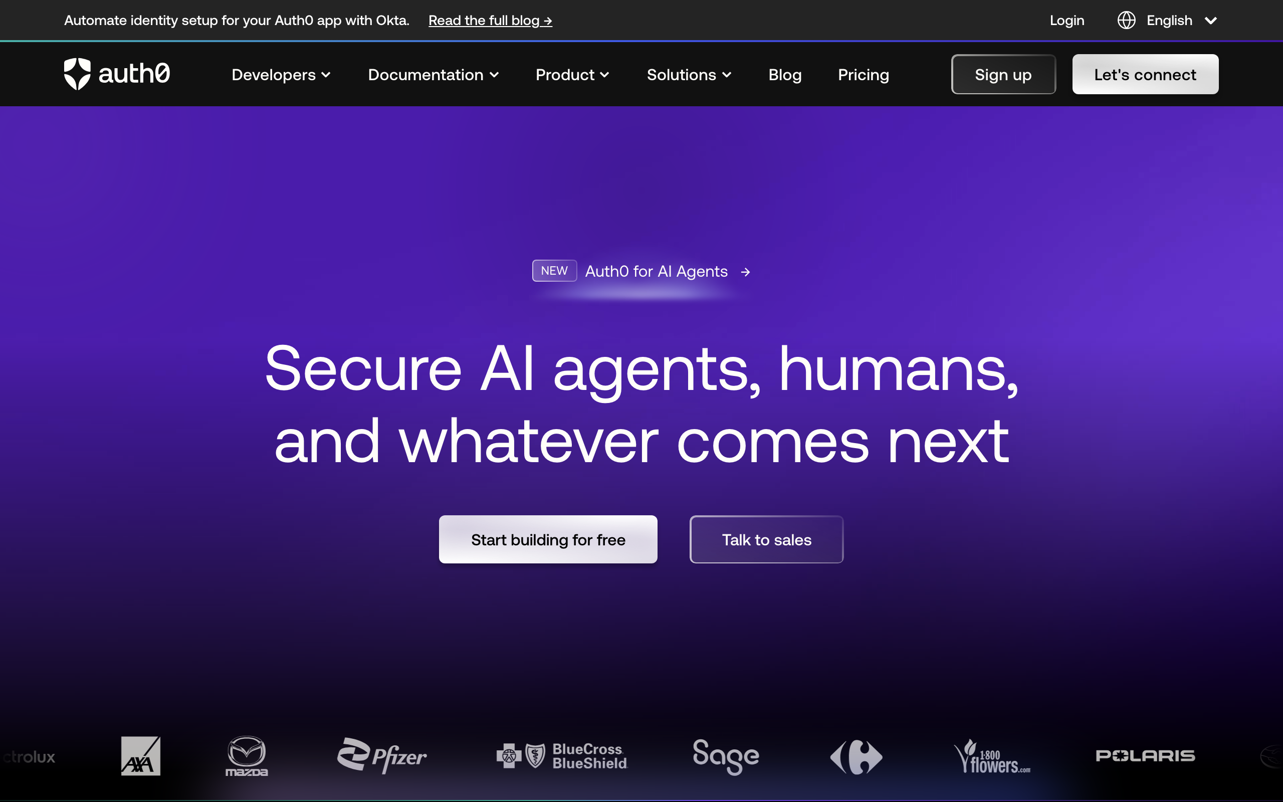 Secure users, AI agents, and more with Auth0, an easy-to-implement, scalable, and adaptable authentication and authorization platform.