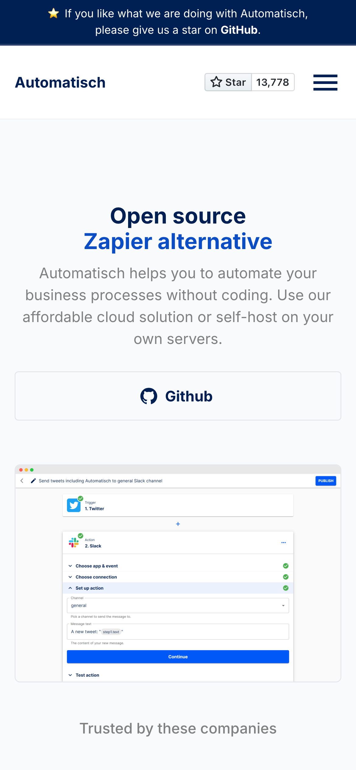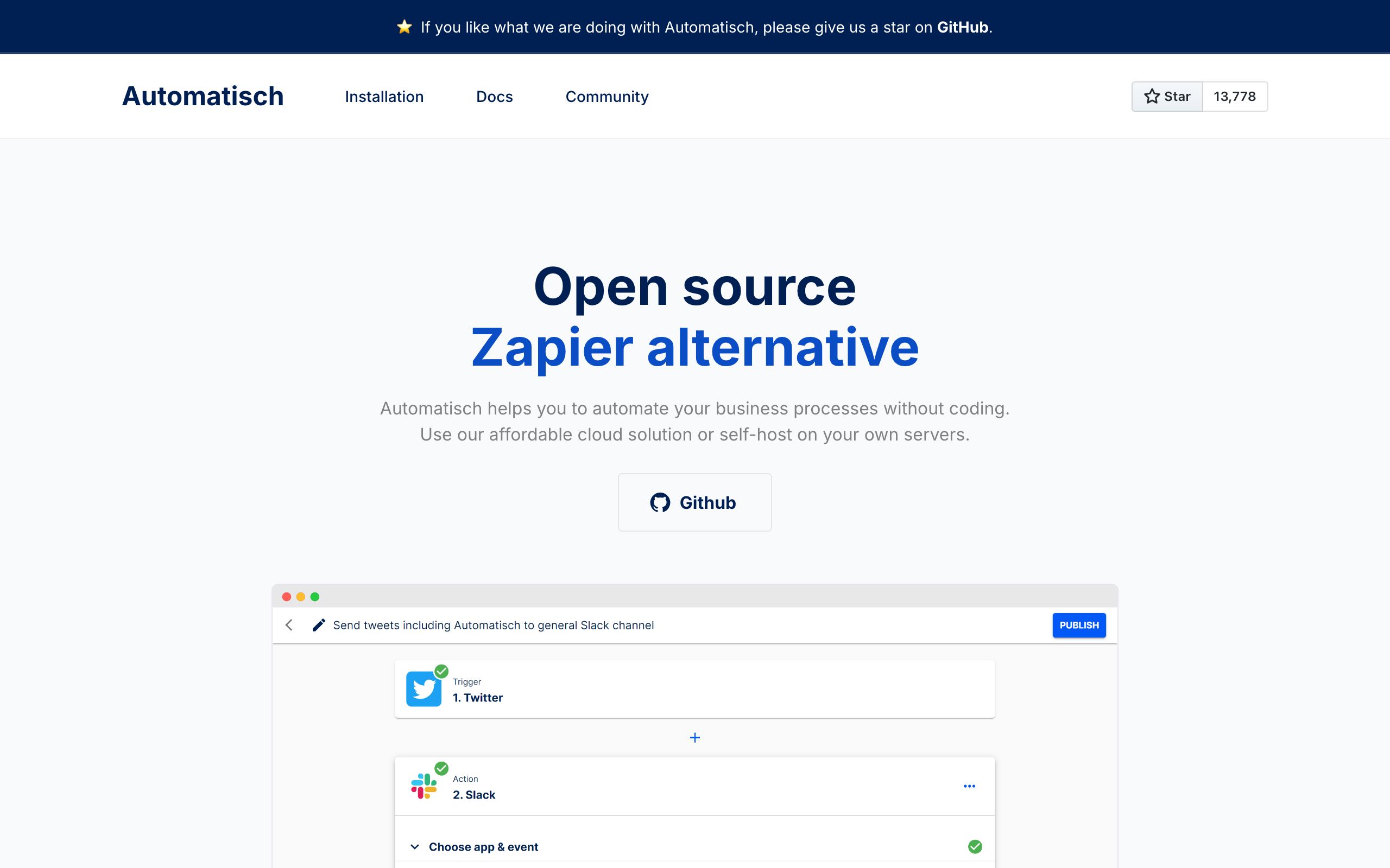 Automatisch is an open-source workflow automation platform that enables users to connect and automate business processes across multiple applications without requiring coding expertise. The tool serves as an alternative to commercial automation solutions, allowing teams to create automated workflows by integrating services like Twitter, Slack, and others. The platform is designed for businesses and individuals seeking to streamline repetitive tasks and improve operational efficiency without significant financial investment or technical barriers. By eliminating the need for programming knowledge, Automatisch makes automation accessible to non-technical users who want to connect their tools and create custom workflows. As an open-source solution, Automatisch offers transparency and flexibility, with source code available on GitHub for inspection, modification, and self-hosting. This approach provides organizations with control over their automation infrastructure and the ability to customize the platform to specific needs. The tool addresses a gap in the automation market by combining the functionality of commercial platforms with the cost-effectiveness and openness of open-source software. Users can build, test, and deploy automation workflows through an intuitive interface, making it suitable for teams across various industries looking to reduce manual work and improve productivity.