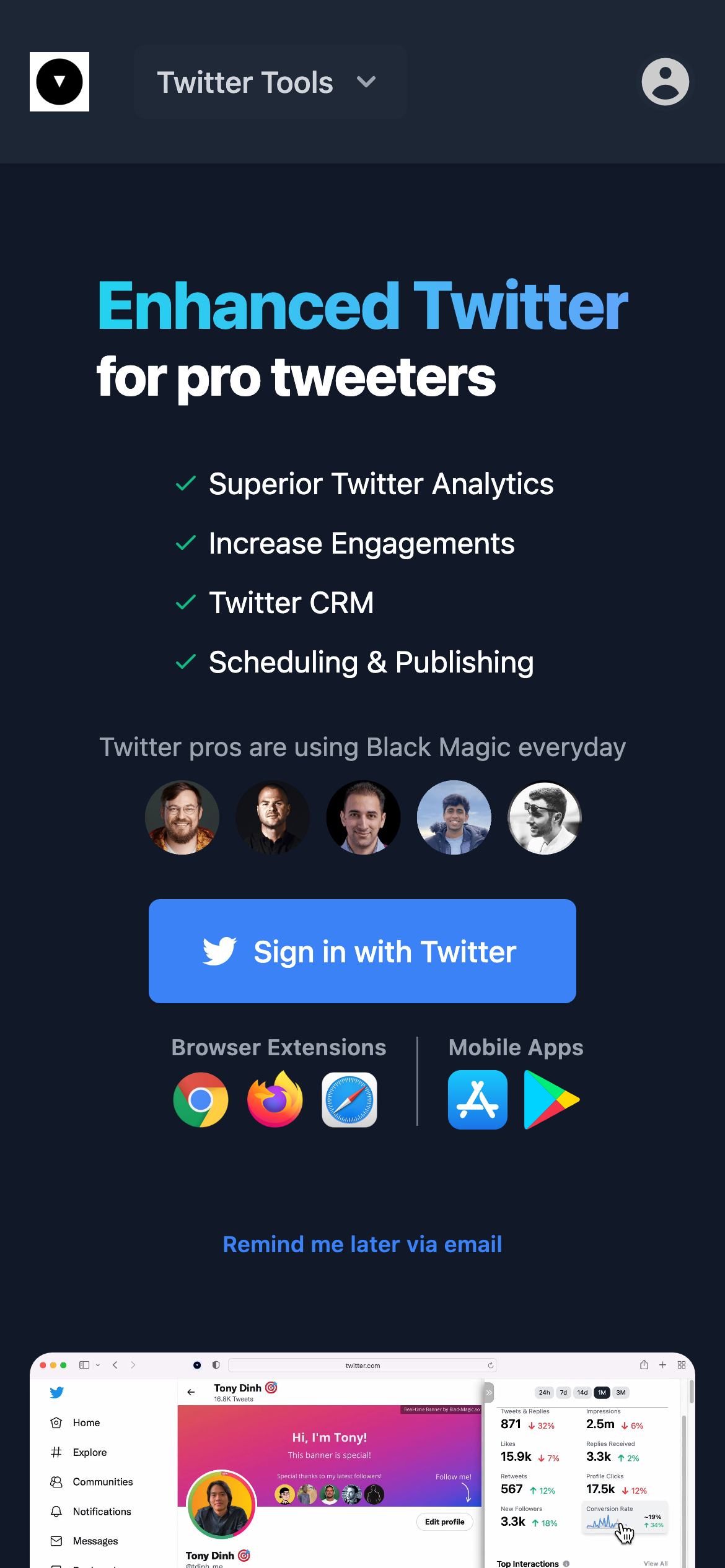 BlackMagic is a productivity and collaboration platform designed to help users gain actionable insights about their audience and manage large-scale engagements. The tool focuses on delivering data-driven understanding of audience behavior, preferences, and engagement patterns that might otherwise remain hidden. The platform serves professionals and teams who need to understand their audience at scale, including marketers, community managers, content creators, and business development specialists. It enables users to track and manage multiple engagements simultaneously while extracting meaningful patterns from audience data. Key capabilities include audience analytics, engagement management across channels, and insight generation from collected data. The platform is designed to handle high-volume interactions without requiring proportional increases in manual effort. BlackMagic offers a free tier, making it accessible for users to explore core functionality before committing to paid plans. This approach allows individuals and teams to evaluate whether the tool meets their specific needs. The platform positions itself as a solution for those seeking to move beyond surface-level audience metrics toward deeper understanding of audience behavior and preferences. It emphasizes the ability to manage relationships and engagements efficiently while extracting insights that inform strategy and decision-making.