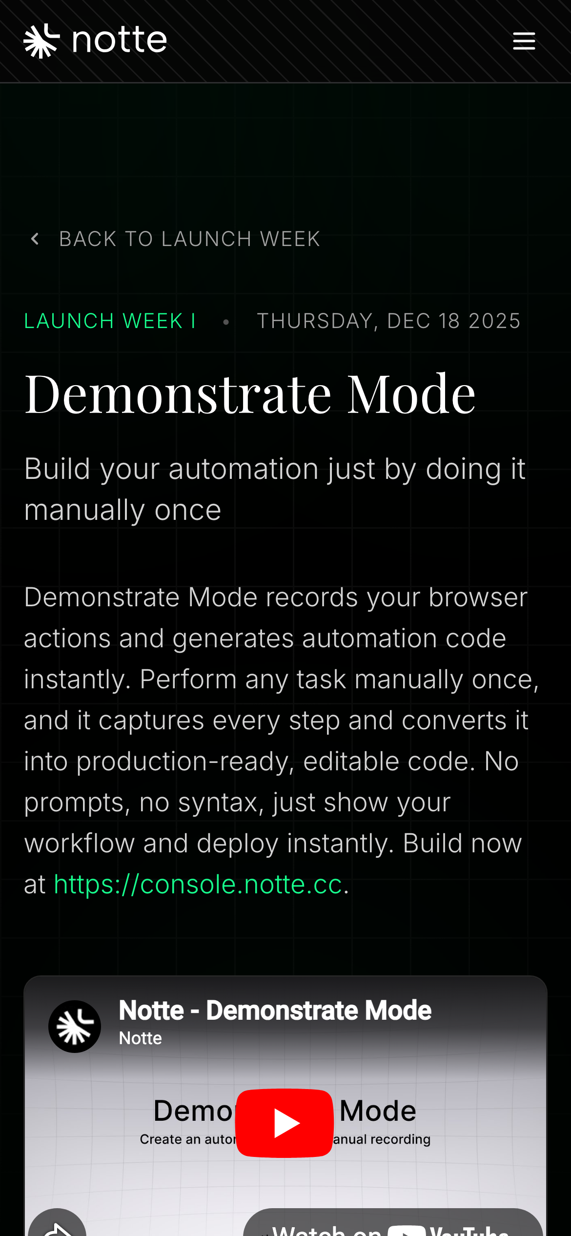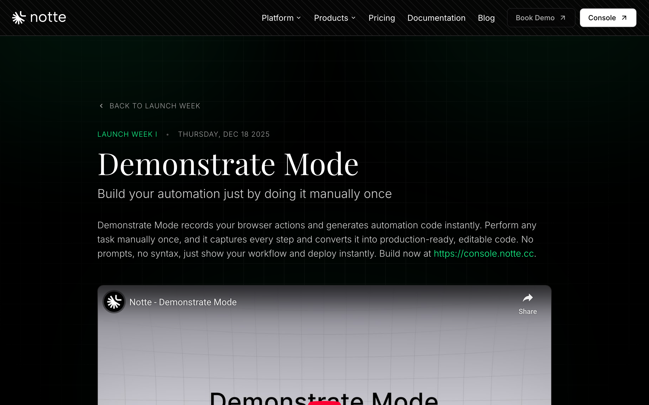 Hey HN, We’ve been building browser agents for a while. In production, we kept converging on the same pattern: deterministic scripts for the happy path, agents only for edge cases. So we built Demonstrate Mode. The idea is simple: You perform your workflow once in a remote browser. Notte records the