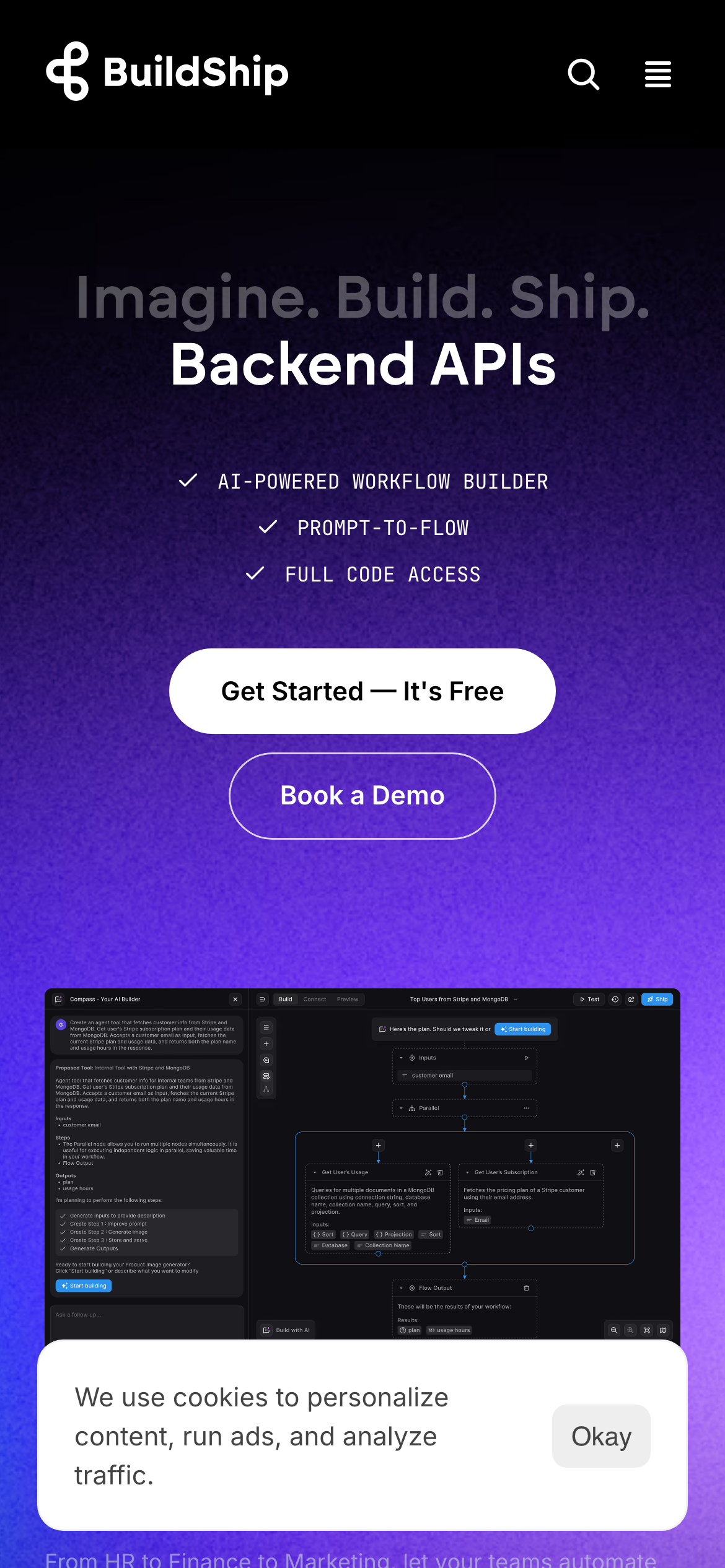 BuildShip powers businesses to visually create AI workflows using natural language. Automate complex backend, develop tools for your AI agents, and easily spin up APIs. No code ease with full code access.