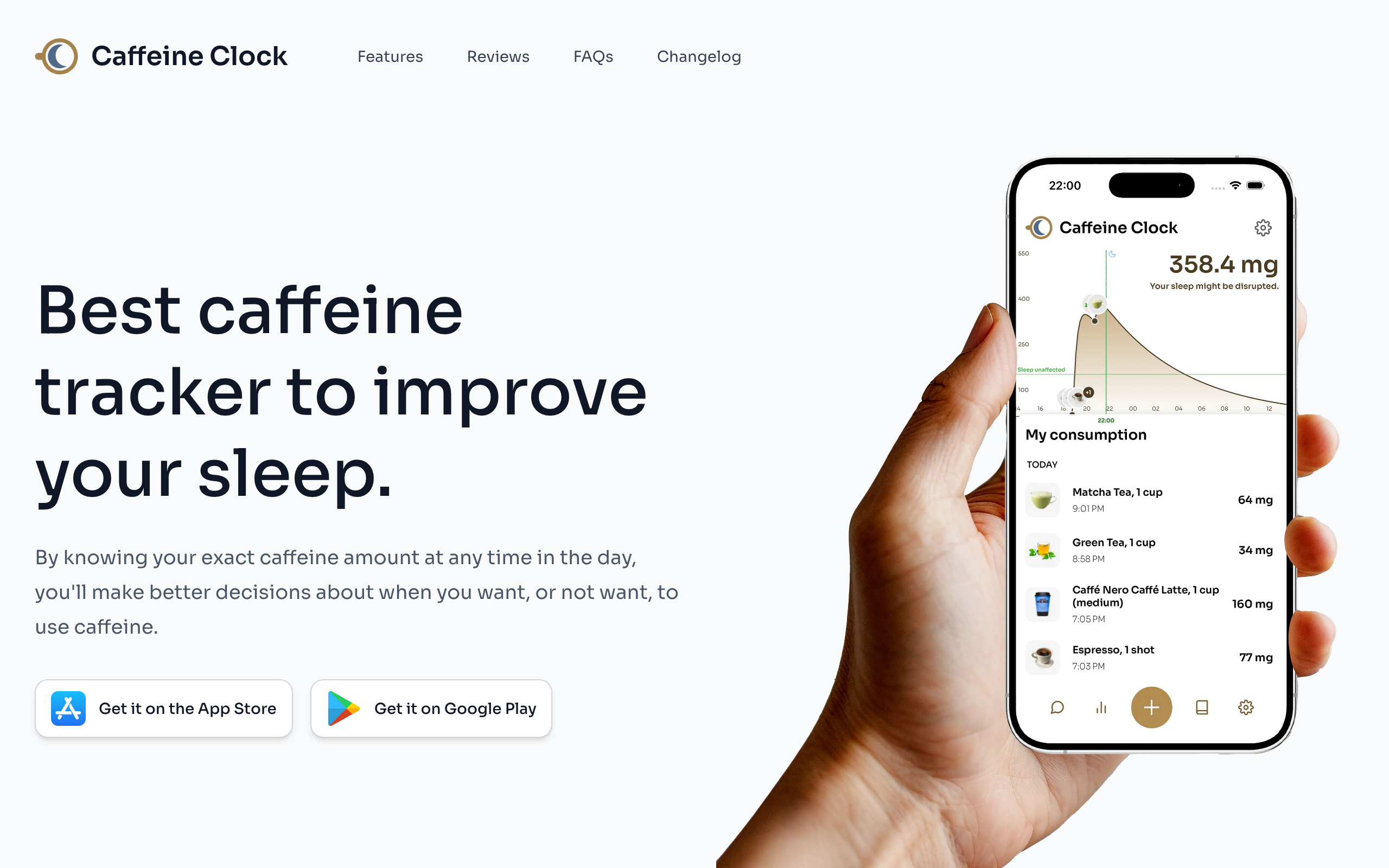- Smart timing recommendations to help you decide when to consume caffeine