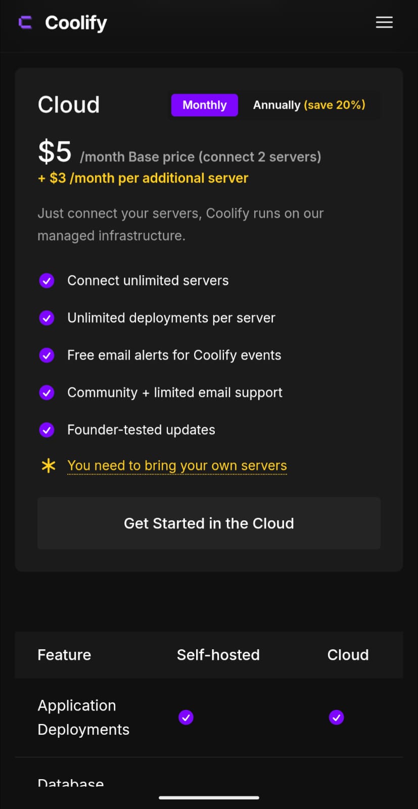 Verify ownership of app.coolify.io to unlock widgets, collect verified reviews, and manage your listing.