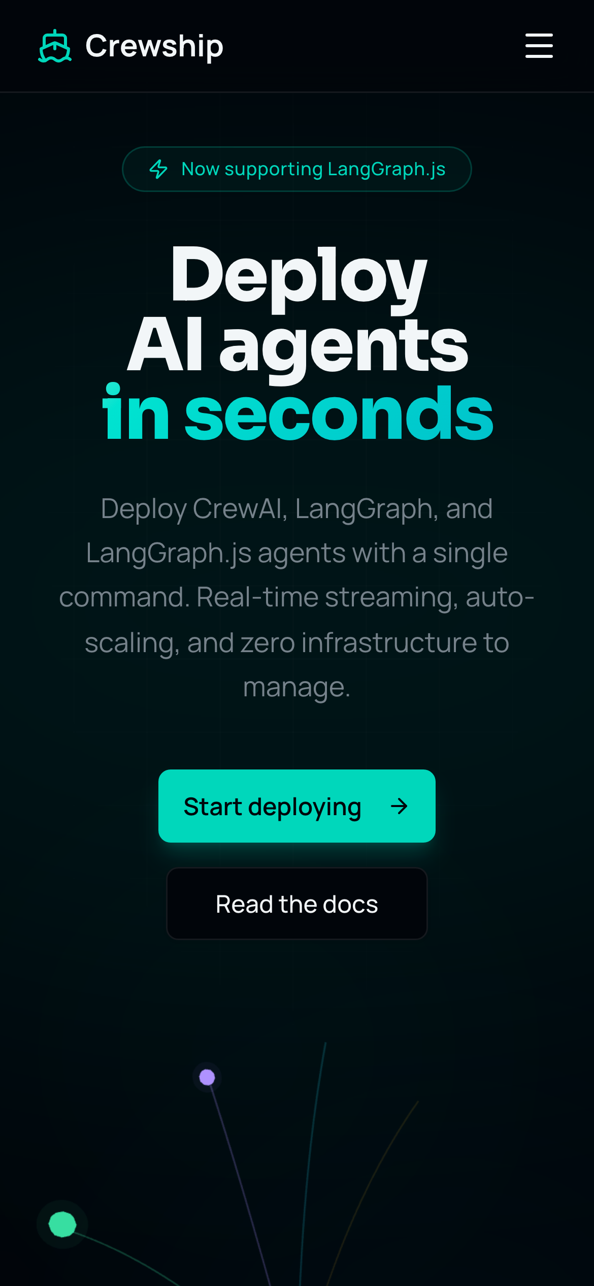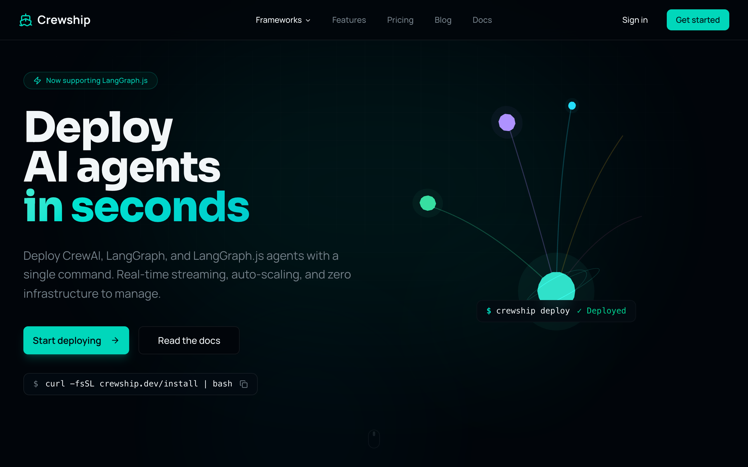 - Deploy CrewAI, LangGraph, and LangGraph.js agents with a single command