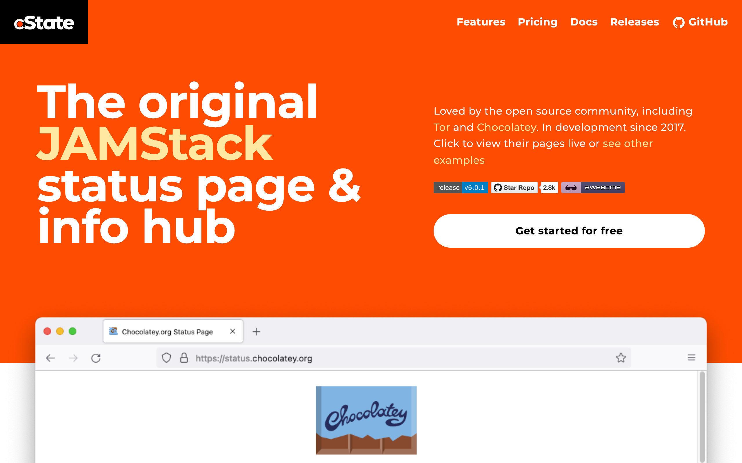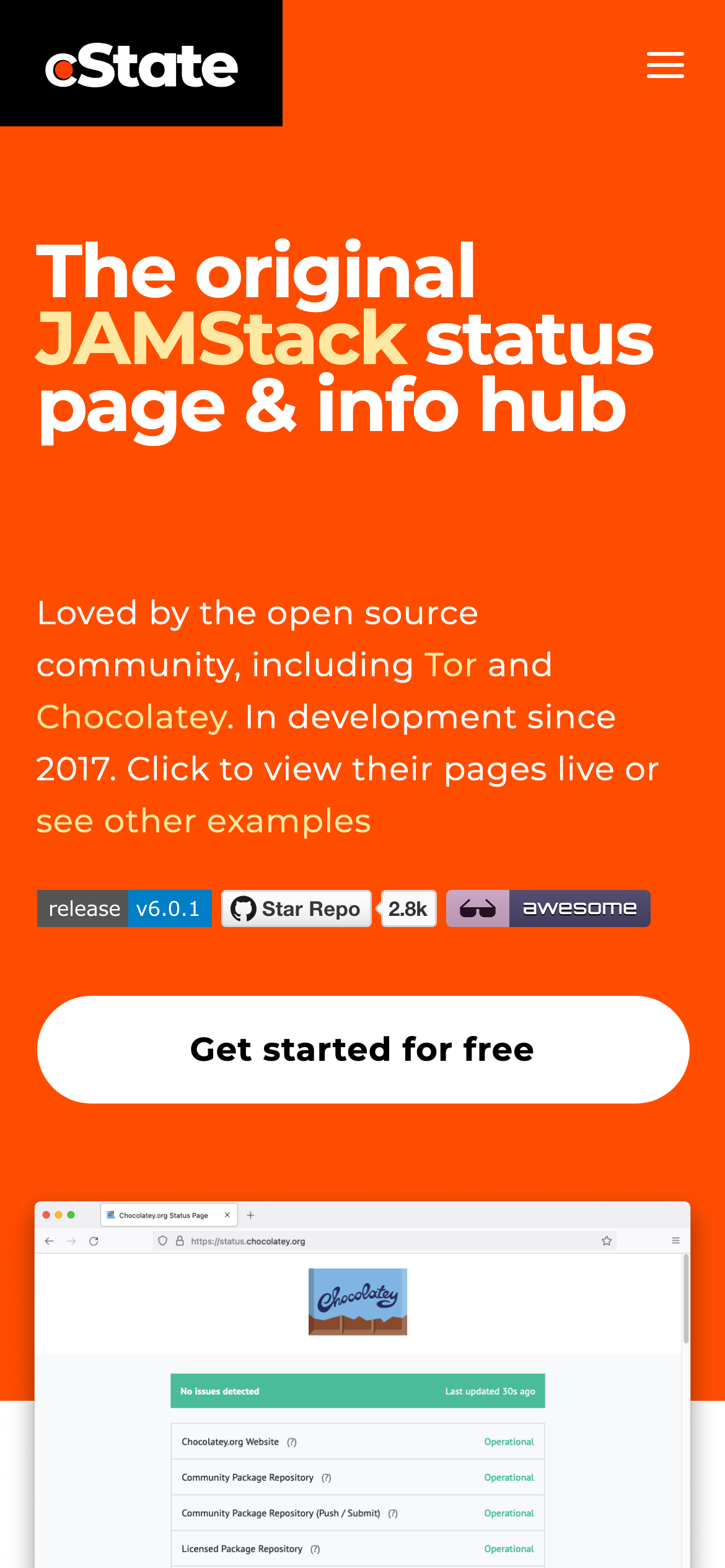 cState is an open-source static status page generator built with Hugo. It enables organizations to create and maintain status pages that load quickly and require minimal resources. The platform generates lightweight HTML and CSS, making pages suitable for deployment on modern and legacy browsers, including Internet Explorer 8 and newer versions. The tool is designed for teams seeking a straightforward alternative to complex status page solutions. cState includes optional Netlify CMS integration for content management, a read-only API for status data access, and support for status badges compatible with shields.io. The static site architecture eliminates the need for server-side infrastructure, reducing operational complexity and costs. cState works well with Netlify for hosting and supports Docker deployments. The minimal JavaScript approach keeps pages performant and secure. Users can customize the design and functionality to match their needs without extensive configuration. The project is maintained as free, open-source software on GitHub, making it accessible to projects of any size. It serves organizations that need functional status communication without the overhead of full-featured SaaS platforms, particularly those already using static site generators or preferring simplified infrastructure.