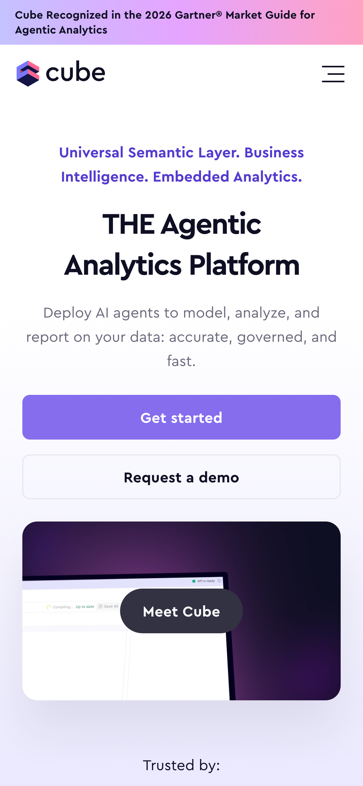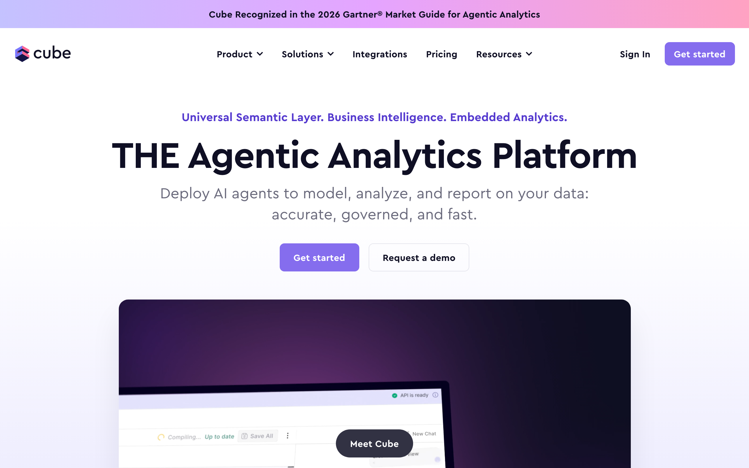 Cube is the agentic analytics platform with universal semantic layer, native BI, and AI agents. Deploy autonomous analytics without vendor lock-in.