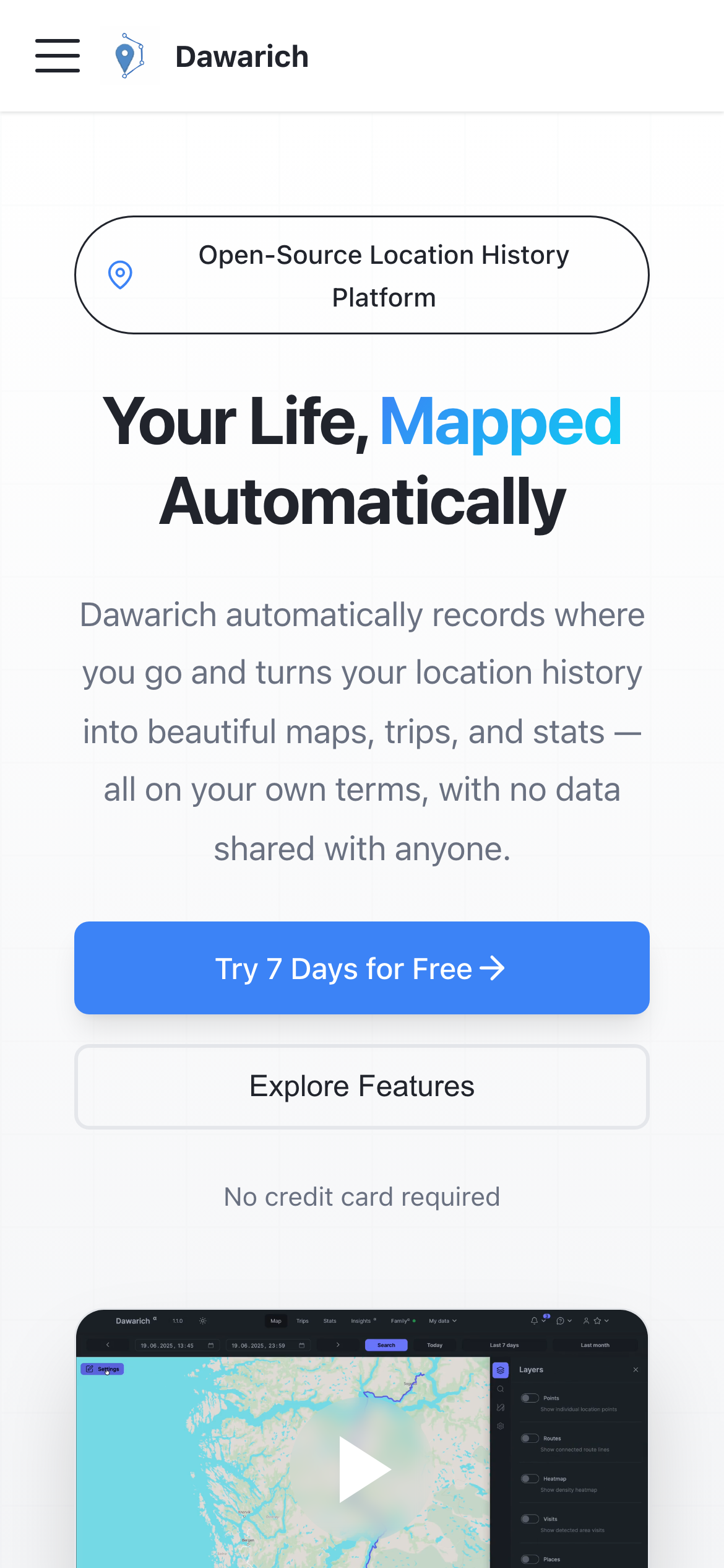 Open sourceVisit dawarich.app for full pricing details.