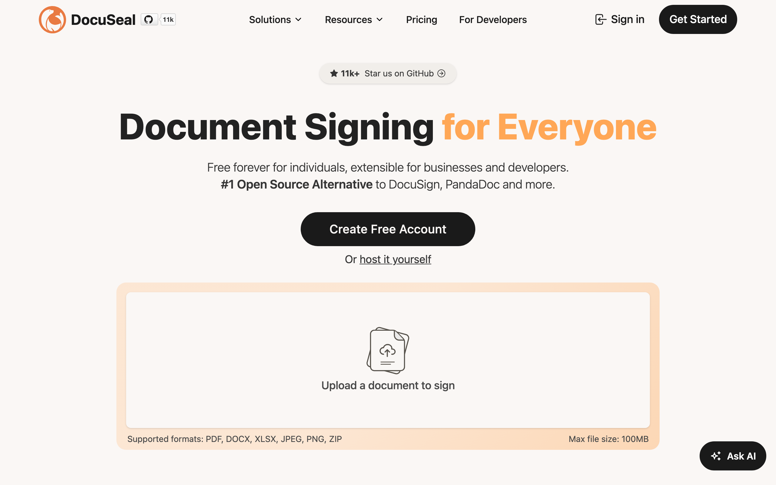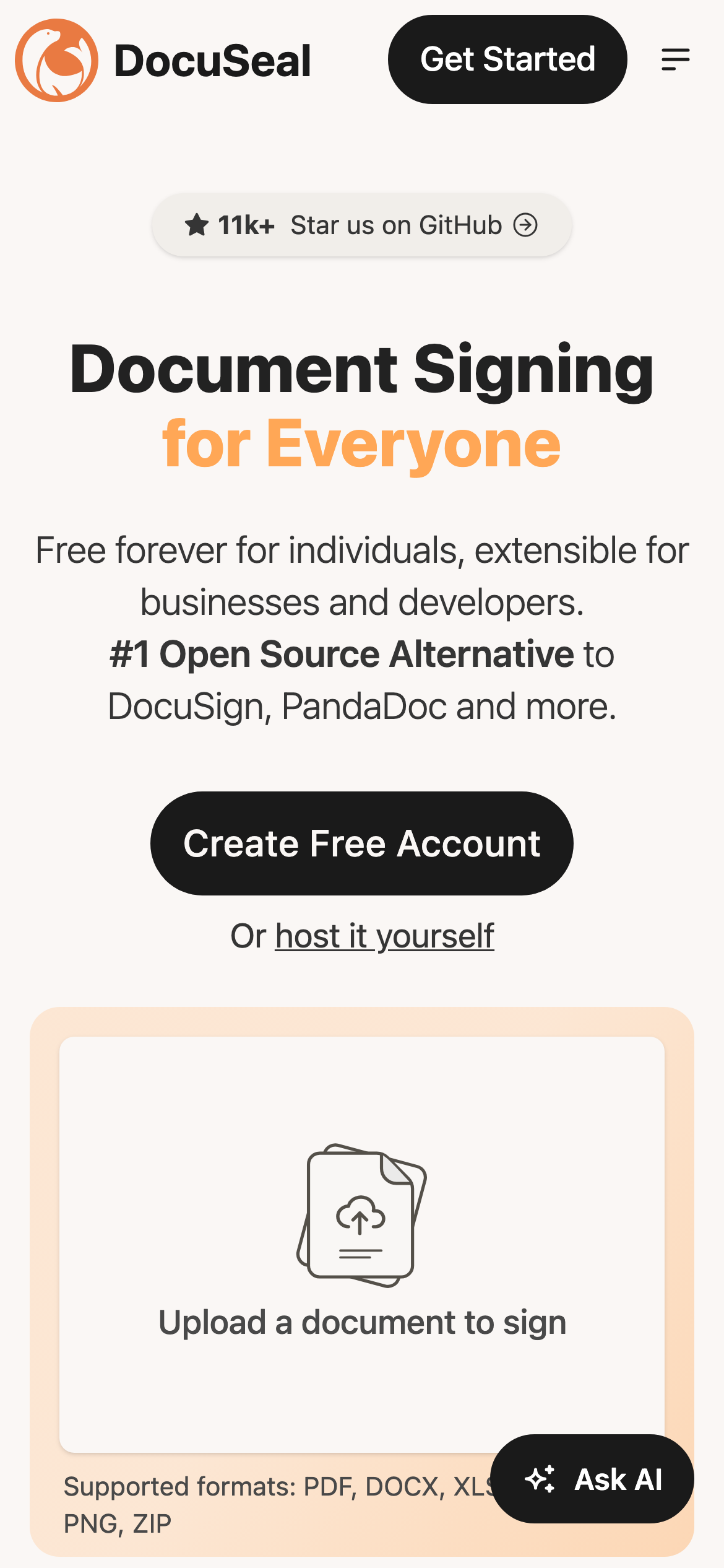Docuseal is a free, open-source platform designed to streamline the document filling and signing process. Users can create custom PDF forms that recipients complete and sign through an intuitive online interface. The tool automates digital signature implementation, eliminating manual signature workflows. The platform serves organizations and individuals who need to collect signed documents without investing in expensive enterprise solutions. It works well for contracts, agreements, applications, consent forms, and other documents requiring signatures and field completion. Key characteristics include its open-source nature, which allows for self-hosting and customization, and the absence of licensing costs. The tool prioritizes ease of use, requiring no technical expertise to create forms or request signatures. The automatic digital signature feature reduces friction in document workflows. Docuseal is available both as a web-based application and through Docker deployment options, providing flexibility for different implementation needs. The open-source codebase is publicly available on GitHub, enabling developers to review, modify, and contribute to the project. The solution appeals to small businesses, nonprofits, legal practices, and enterprises seeking cost-effective document management without vendor lock-in or ongoing subscription fees.