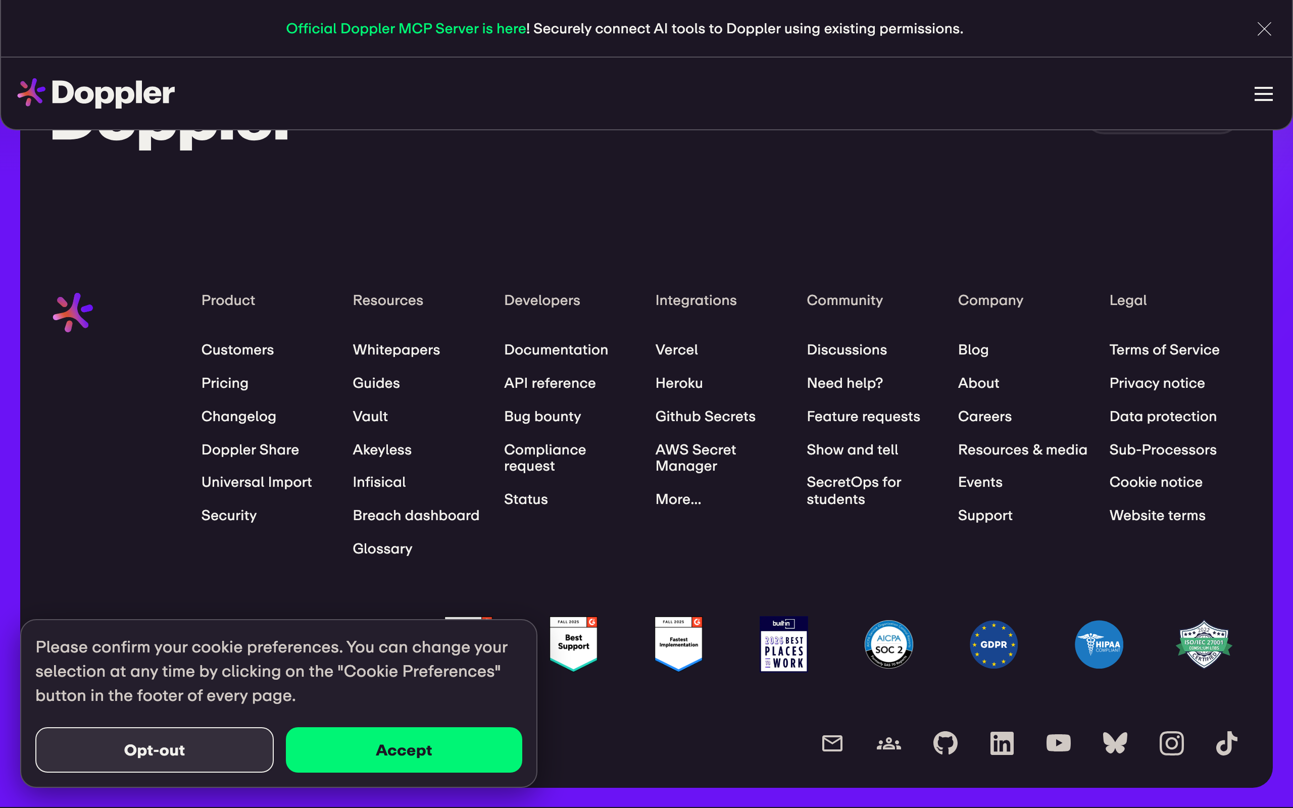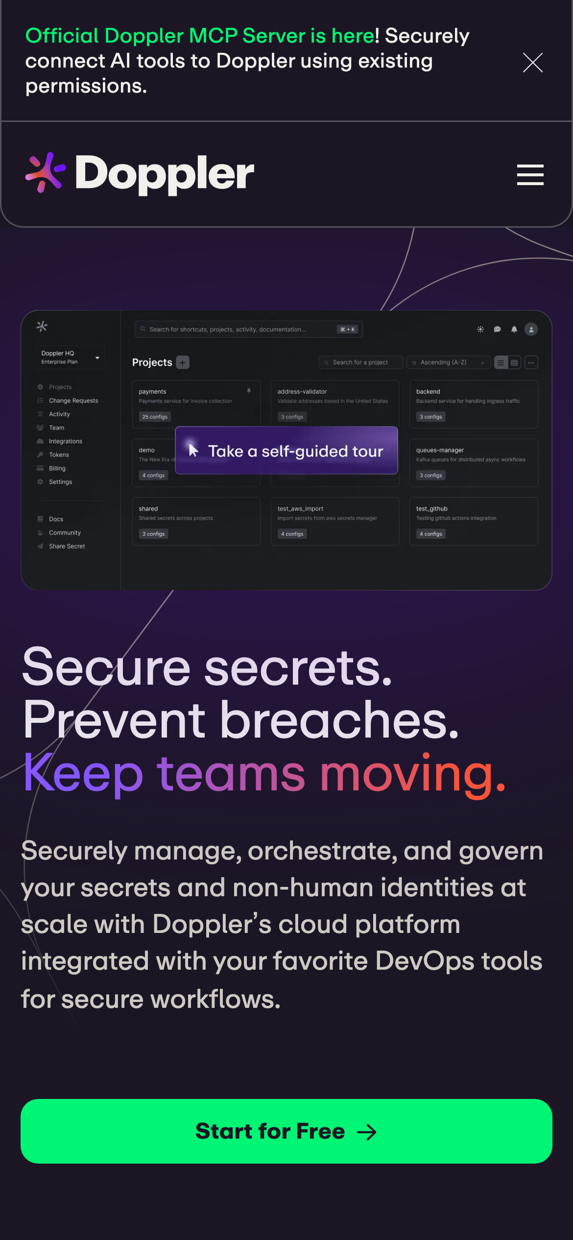 Doppler is a secrets management platform designed for developers and development teams. It provides a centralized system to secure, synchronize, and automate secrets—such as API keys, database credentials, and authentication tokens—across multiple environments and infrastructure components. The platform enables teams to manage sensitive configuration data without hardcoding credentials into applications or repositories. Doppler supports secret rotation, access controls, and audit logging to help teams maintain security standards across development, staging, and production environments. Key functionality includes environment-specific secret management, automated secret syncing to applications and services, integration with popular CI/CD tools and cloud platforms, and team collaboration features with role-based permissions. The platform reduces the complexity of managing secrets across distributed systems and helps teams maintain consistency in how sensitive data is handled. Doppler is available as an open-source solution, making it accessible for teams of varying sizes. It serves development teams that need to streamline secret management while maintaining security practices across their infrastructure. The platform is particularly relevant for teams using modern deployment practices, containerized applications, or multi-environment workflows where secret synchronization is critical to operational efficiency.