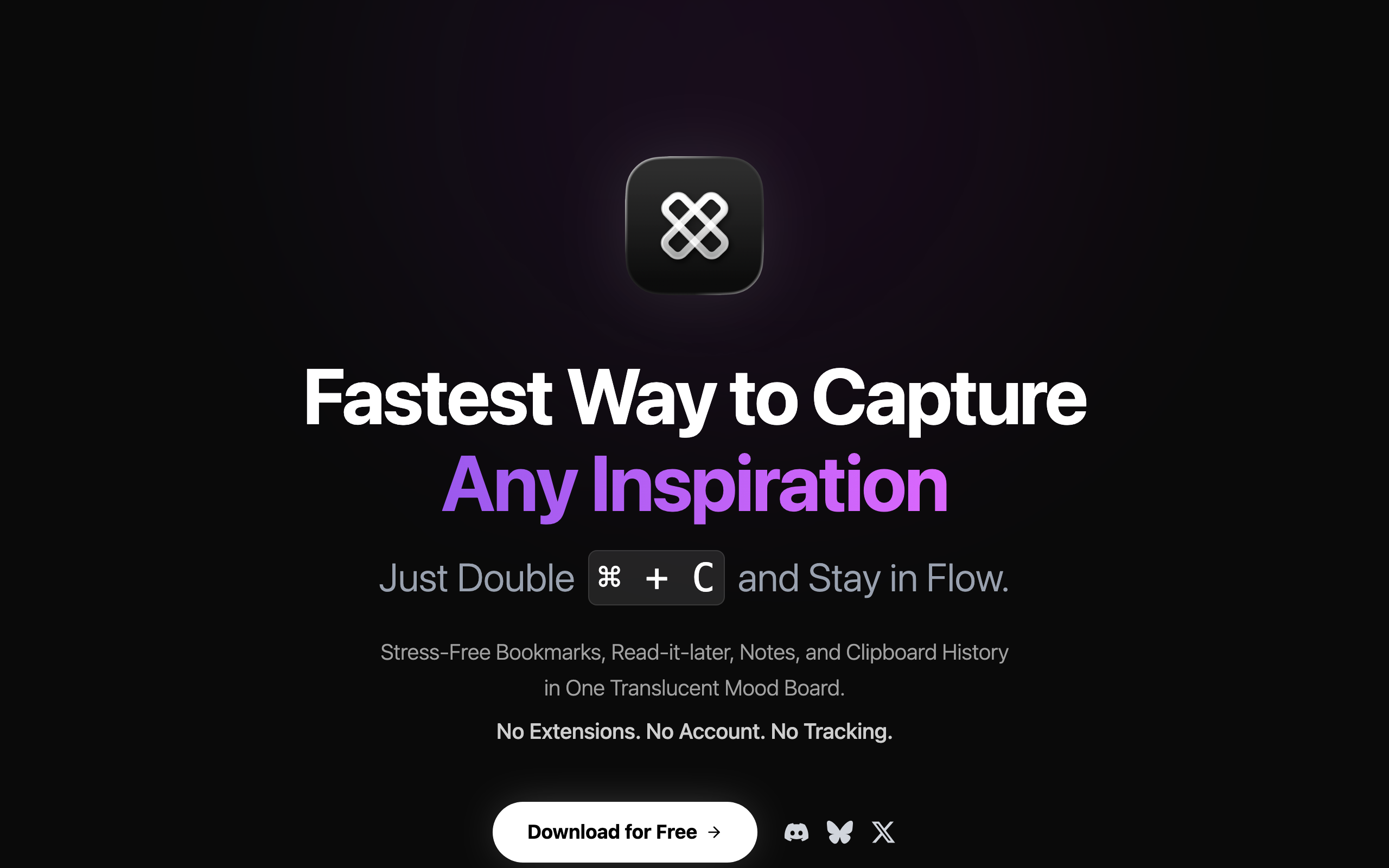 - Automatically captures content on double cmd + c without requiring browser extensions