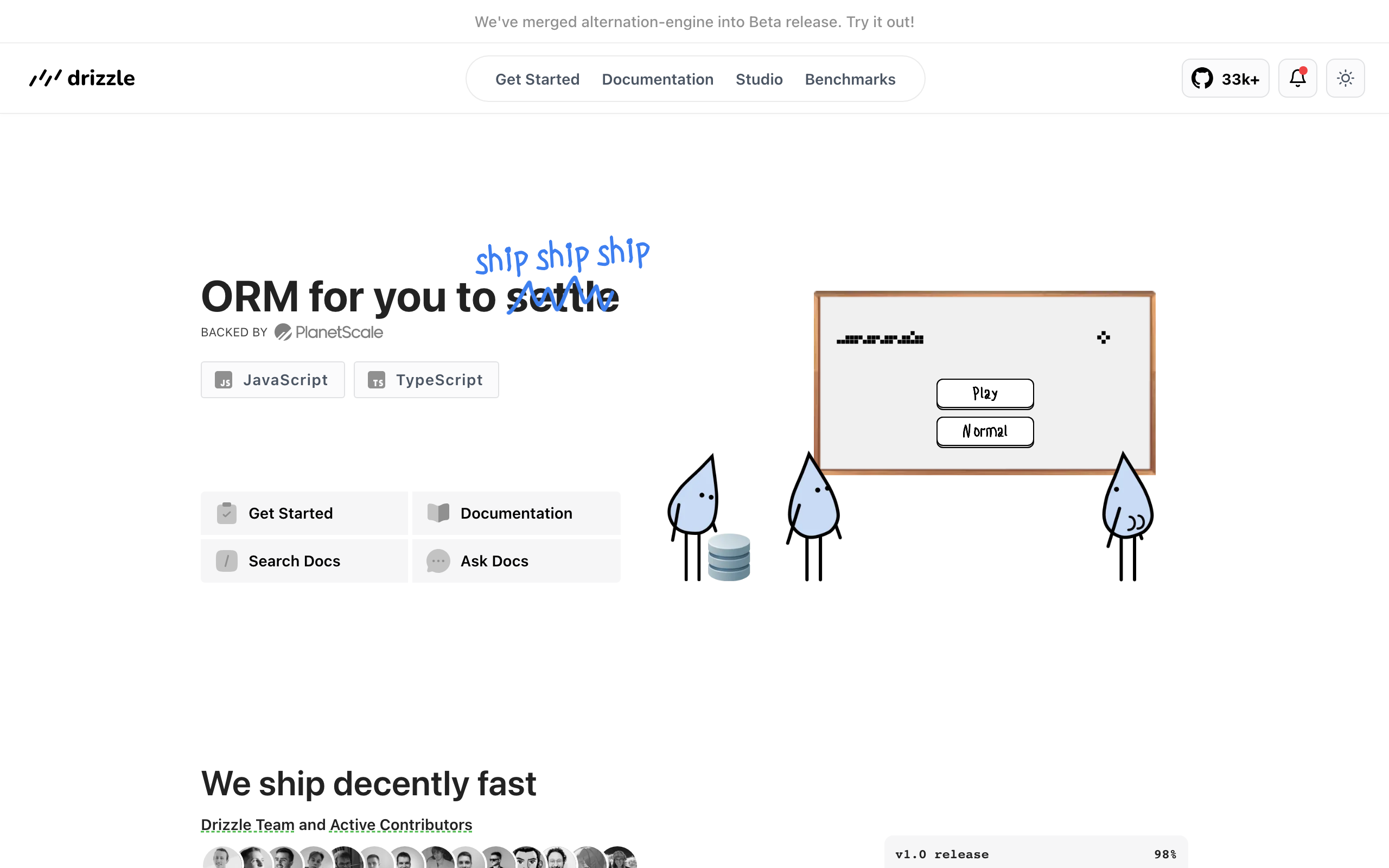Drizzle is an open-source ORM (Object-Relational Mapping) library designed for TypeScript, JavaScript, and Node.js applications. It provides developers with tools to interact with databases using type-safe code rather than raw SQL queries, while maintaining a focus on performance and developer experience. The ORM operates as a headless solution, meaning it integrates into existing project architectures without imposing specific framework constraints. Drizzle supports multiple databases and offers features like schema definition, query building, and type inference directly from database schemas, enabling developers to catch errors at compile-time rather than runtime. Drizzle is suited for developers and teams building backend applications who prioritize type safety and efficient database interactions. The library appeals to those seeking a lightweight alternative to heavier ORMs, as it avoids unnecessary abstractions while maintaining comprehensive functionality. Key characteristics include its lightweight architecture, support for modern JavaScript features, and emphasis on developer experience through comprehensive documentation and community resources. Being fully open-source, it allows developers to review code, contribute improvements, and use it without licensing costs. The project is actively maintained and includes an engaged community through Discord and social channels, providing support for developers implementing the tool in their applications.