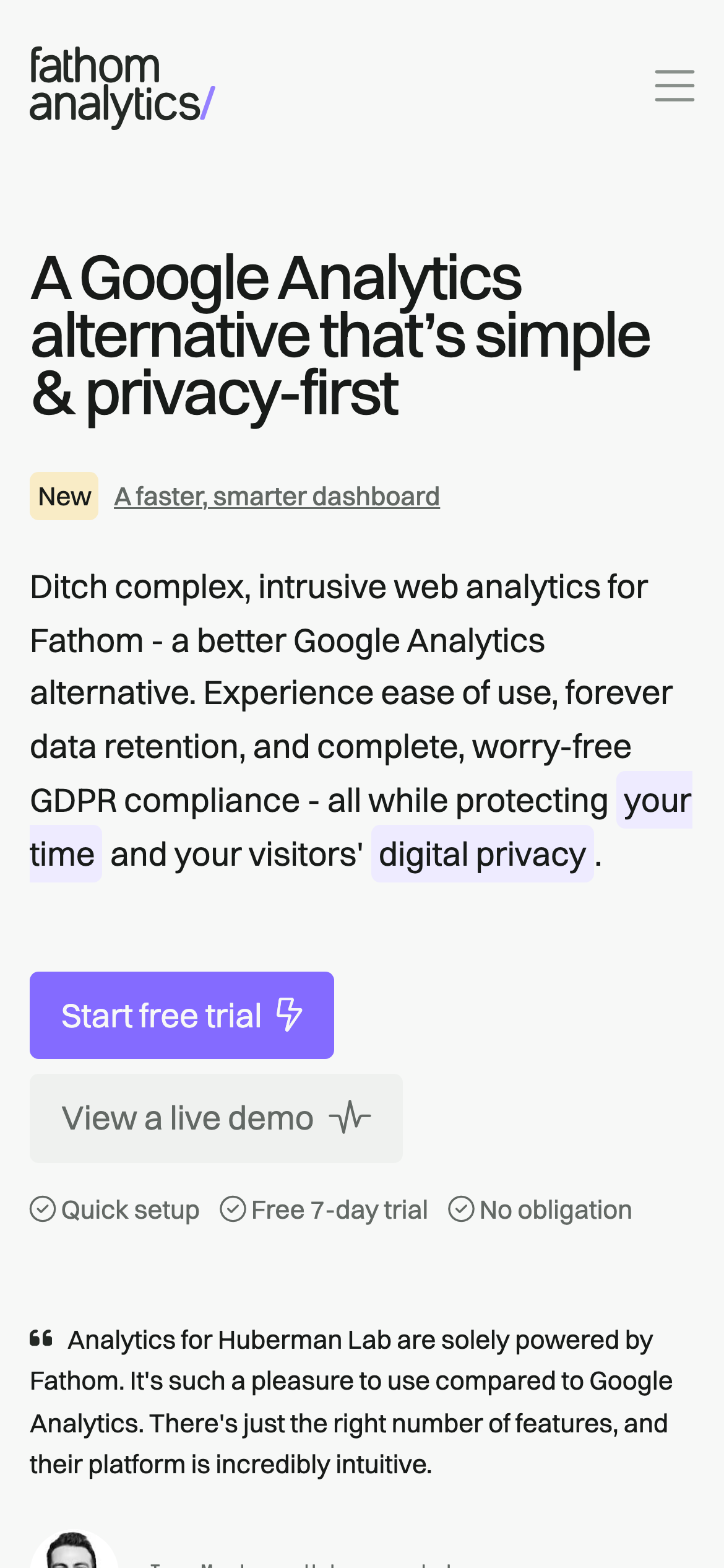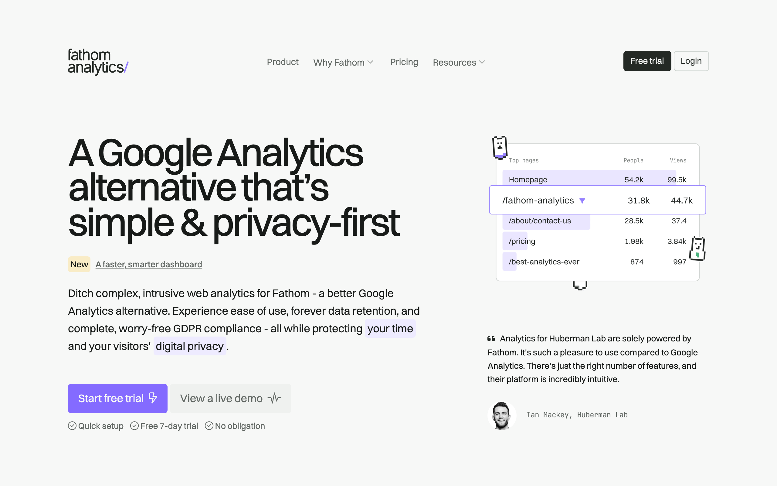 - Google Analytics alternative with faster performance and cleaner interface