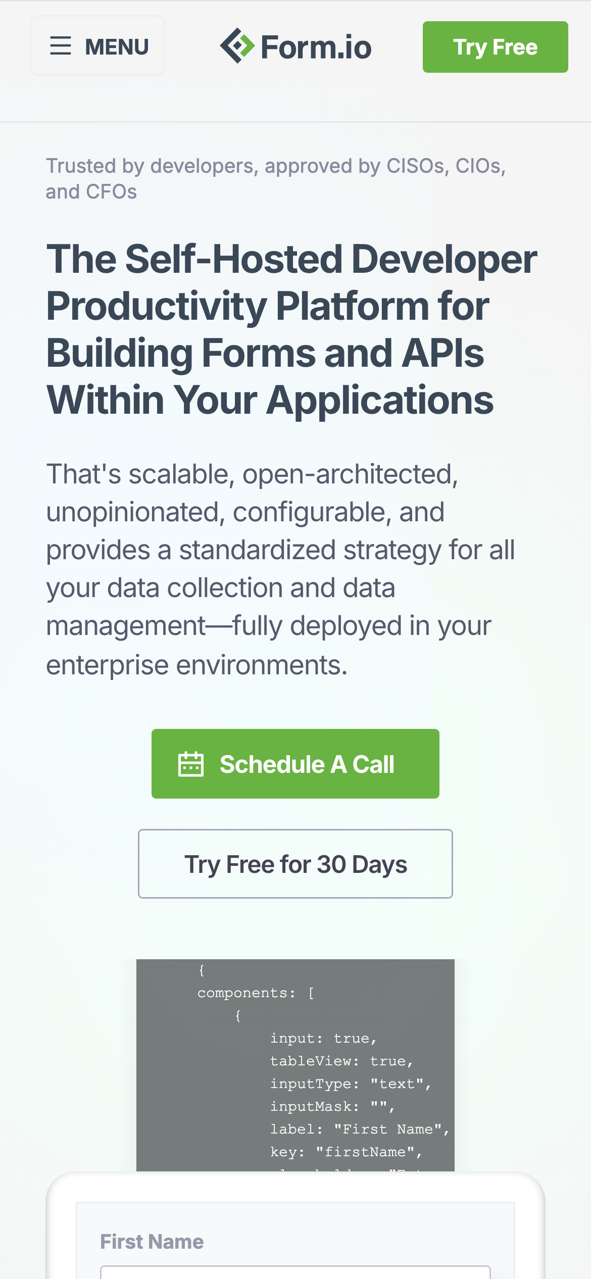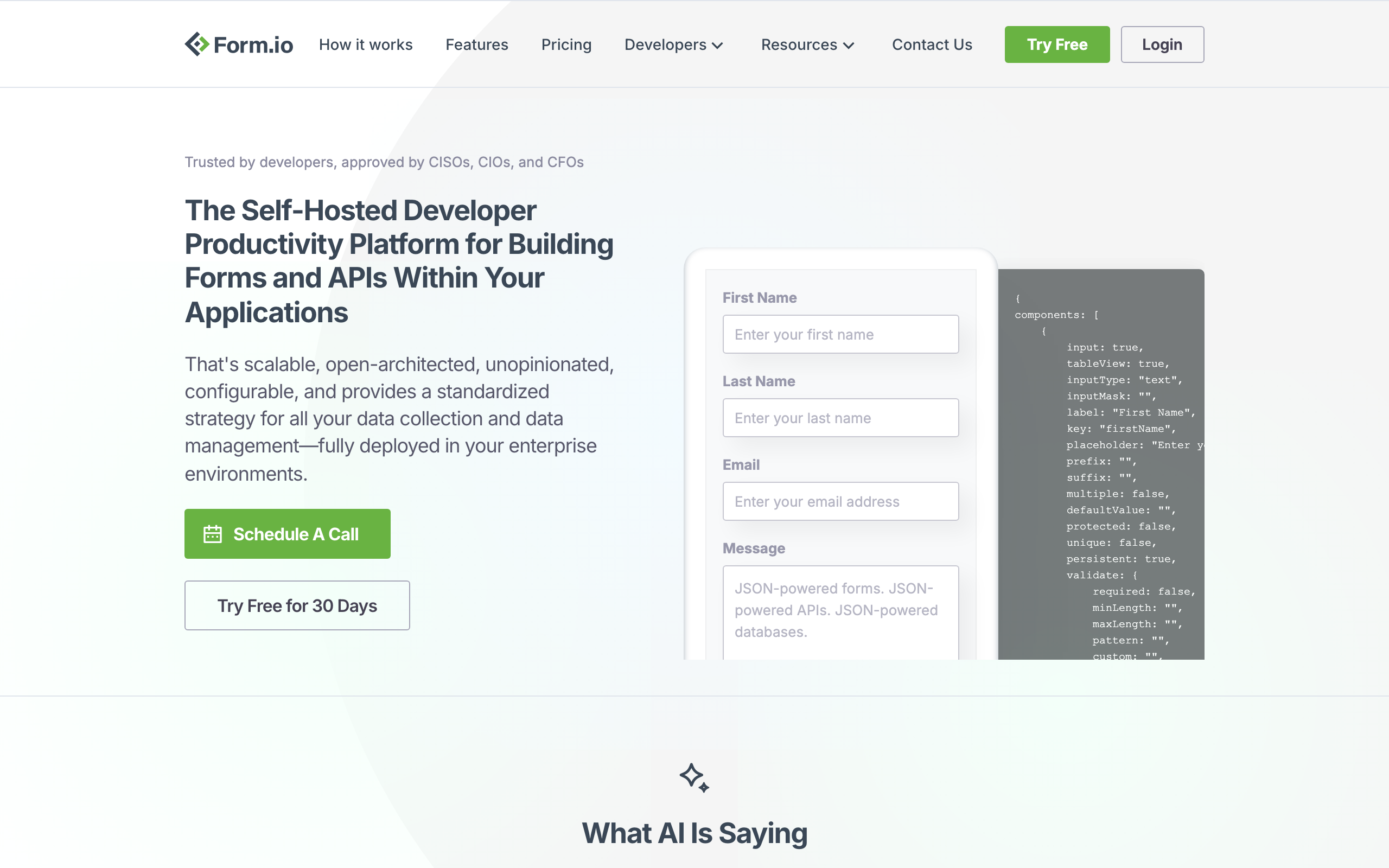 form.io is a REST API building platform designed for standardized data collection and routing within enterprise applications. It features a drag-and-drop form builder that generates JSON schema forms, allowing developers to create and deploy forms without writing code. The platform is application framework agnostic, meaning forms can be integrated into projects built with any technology stack or vanilla JavaScript. form.io offers both open source and enterprise versions, making it accessible to individual developers and large organizations. The core library is a plain JavaScript implementation built with modern ES6 practices, requiring no dependencies on jQuery, Angular, React, or other frameworks. This approach simplifies integration and reduces project bloat. The platform serves development teams who need to collect and route structured data efficiently across multiple applications. Key differentiators include the JSON-driven architecture that separates form design from implementation, the visual form builder that reduces development time, and the comprehensive SDK for communicating with Form.io APIs. Developers can render forms directly within their applications using the JavaScript SDK, manage form submissions through the REST API, and maintain consistent data structures across projects. The open source availability provides transparency and community contribution opportunities, while the enterprise version offers additional support and features for production environments.