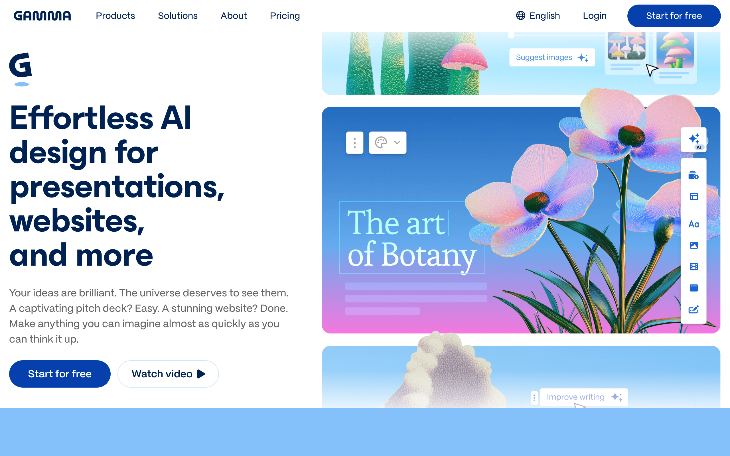 Gamma is an AI-powered tool designed to streamline the creation of presentations and documents. The platform leverages artificial intelligence to assist users in generating, formatting, and organizing content, reducing the time and effort typically required for manual document creation. The tool is available as open source software, making it accessible to developers and organizations looking to integrate or self-host the solution. Gamma serves professionals, educators, and teams who need to produce presentations and documents efficiently without extensive design or formatting experience. Key aspects of Gamma include its AI-assisted content generation capabilities, which help users create structured documents and slideshows. The open source nature of the project allows for community contributions, customization, and deployment flexibility across different environments. Gamma is particularly suited for users who value automation in document workflows and those who prefer open source alternatives to proprietary presentation software. The platform bridges the gap between ease of use and technical control, offering both straightforward generation features for casual users and the ability for developers to modify or extend functionality. As an open source solution in the AI tools category, Gamma positions itself as a transparent, customizable approach to AI-assisted document creation.