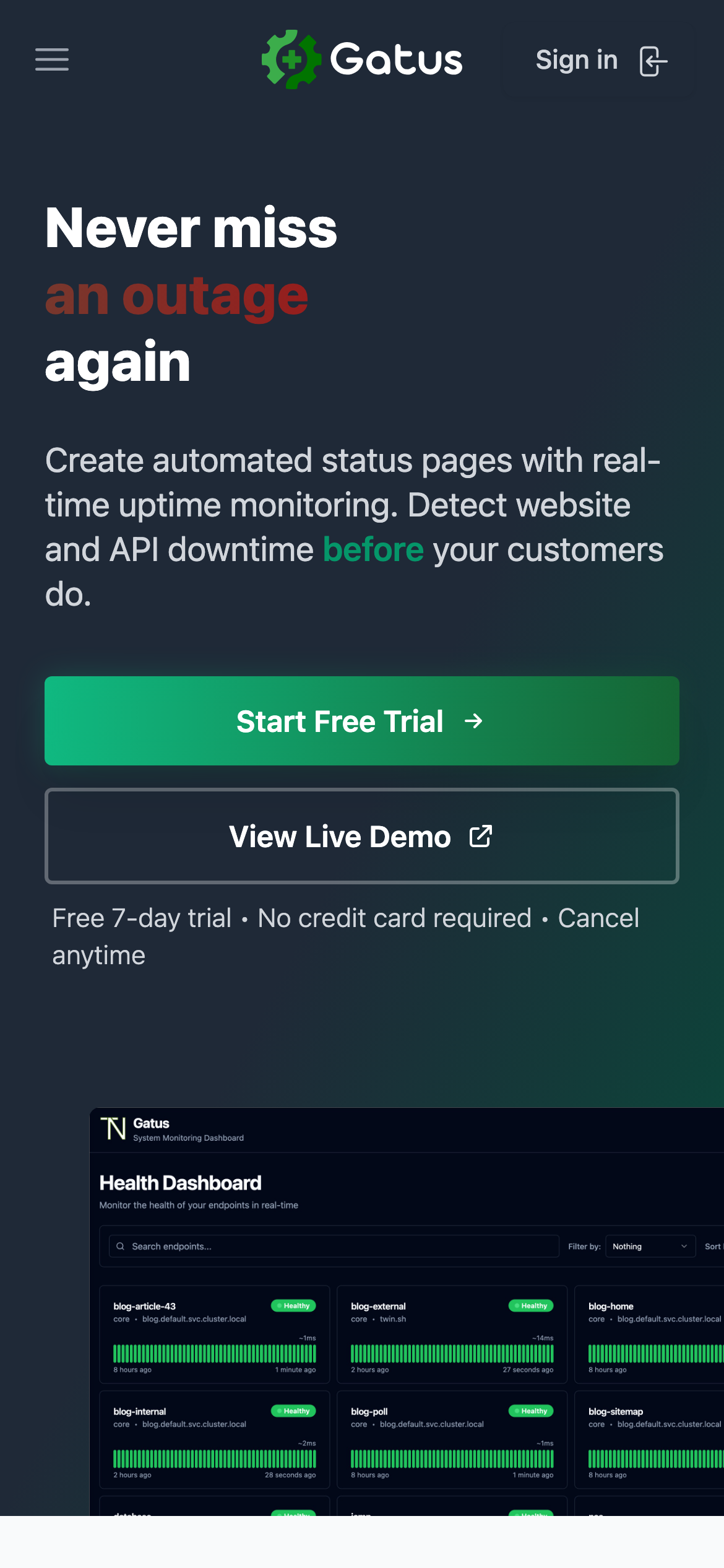 Open sourceVisit gatus.io for full pricing details.