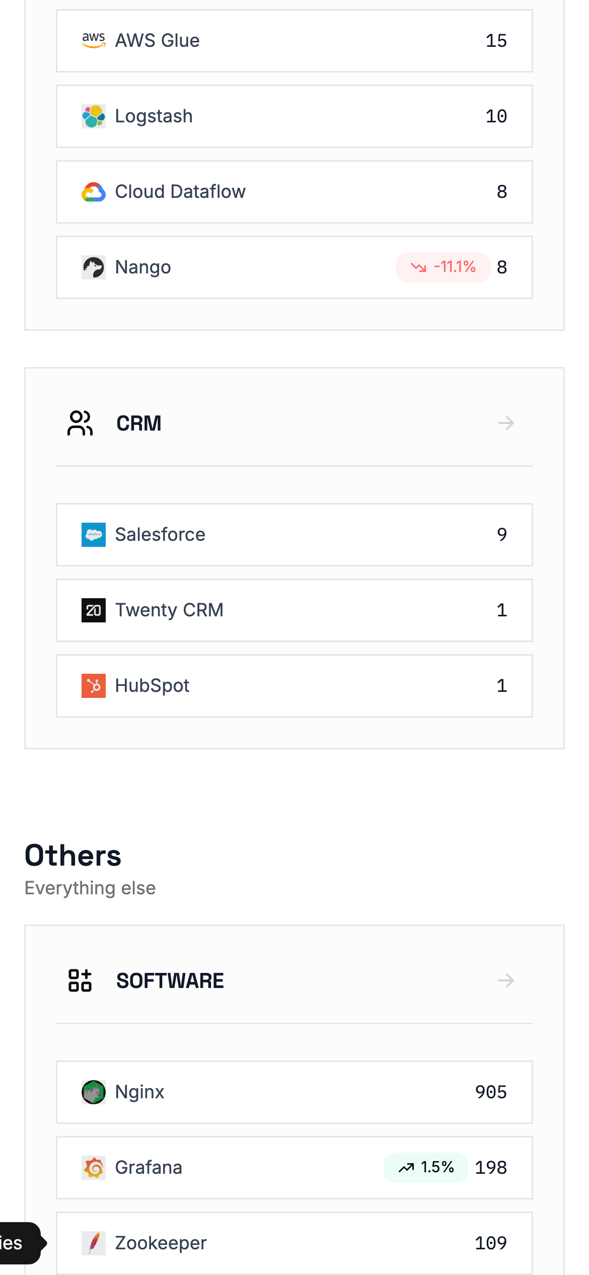 - Monitor tech adoption trends across open-source repositories to identify emerging technologies
