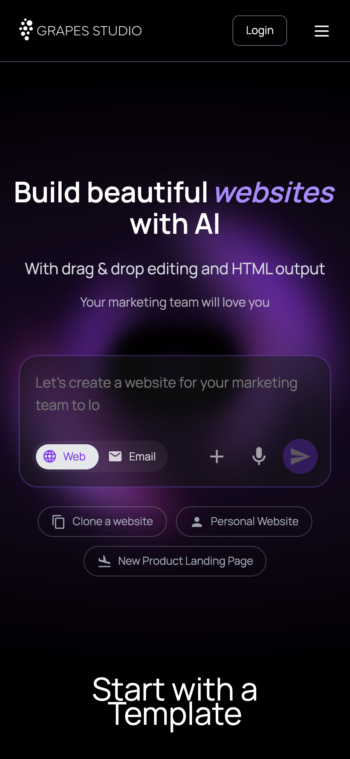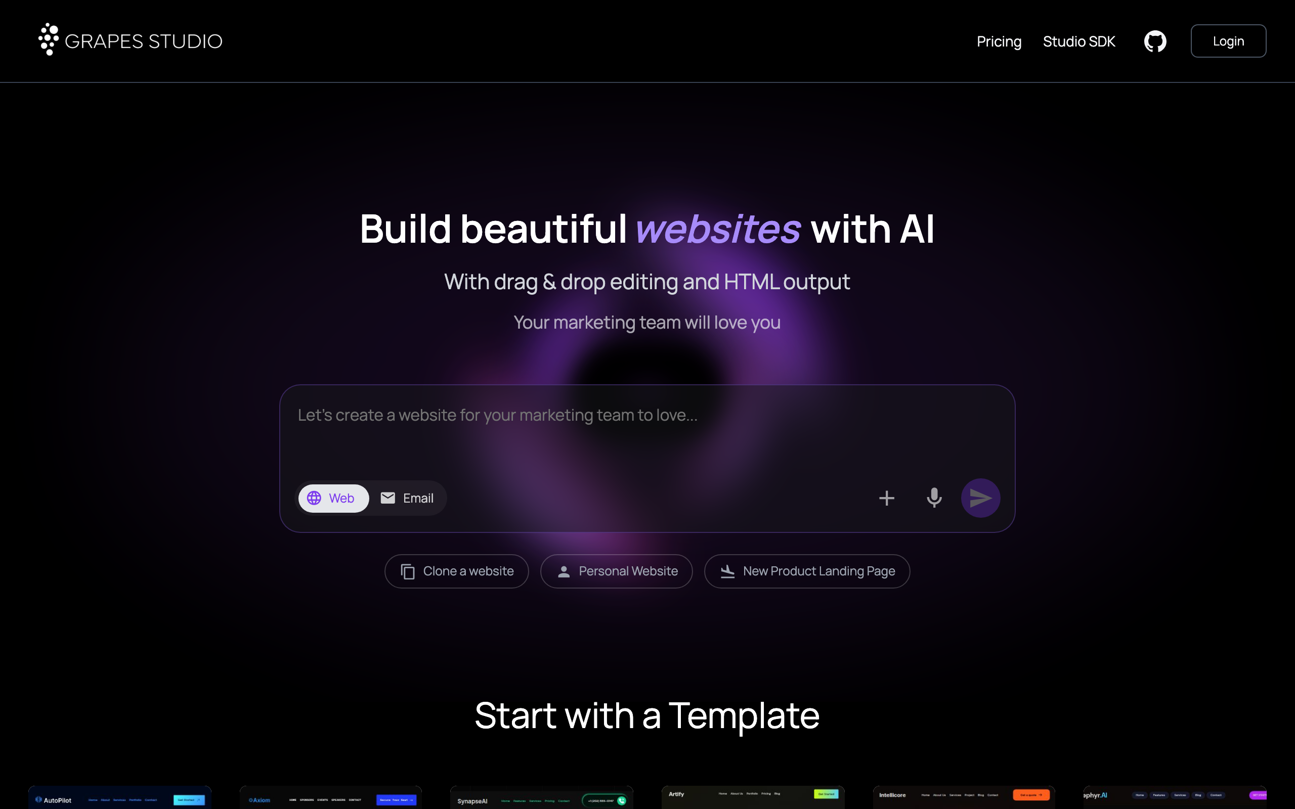 Grapes Studio is an open-source HTML-first editor built on top of GrapesJS, enhanced with an integrated LLM assistant. The tool enables users to create web templates and designs without requiring coding knowledge, combining visual editing capabilities with AI-powered assistance. Unlike contemporary AI-driven site builders that generate full React applications, Grapes Studio takes a more lightweight approach, focusing on HTML-first development. This makes it suitable for users who need to build templates efficiently without the overhead of complex application frameworks. The platform serves designers, developers, and non-technical users who want to create web templates with visual tools and AI support. Its open-source nature allows for community contribution and customization, making it accessible to users with varying technical backgrounds. Key features include a visual template editor, LLM assistant integration for enhanced workflow, and a framework-agnostic approach to web building. The tool is positioned as a next-generation alternative to traditional template editors, emphasizing simplicity and practicality over generating bloated code structures. Grapes Studio is freely available and maintained as an open-source project, making it a cost-effective solution for template creation and web design workflows.