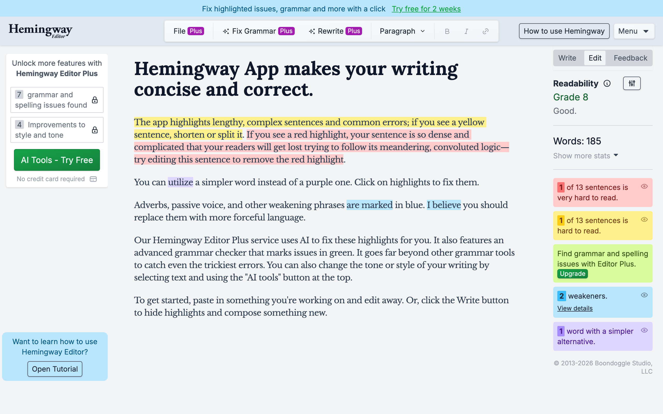 Open sourceVisit hemingwayapp.com for full pricing details.