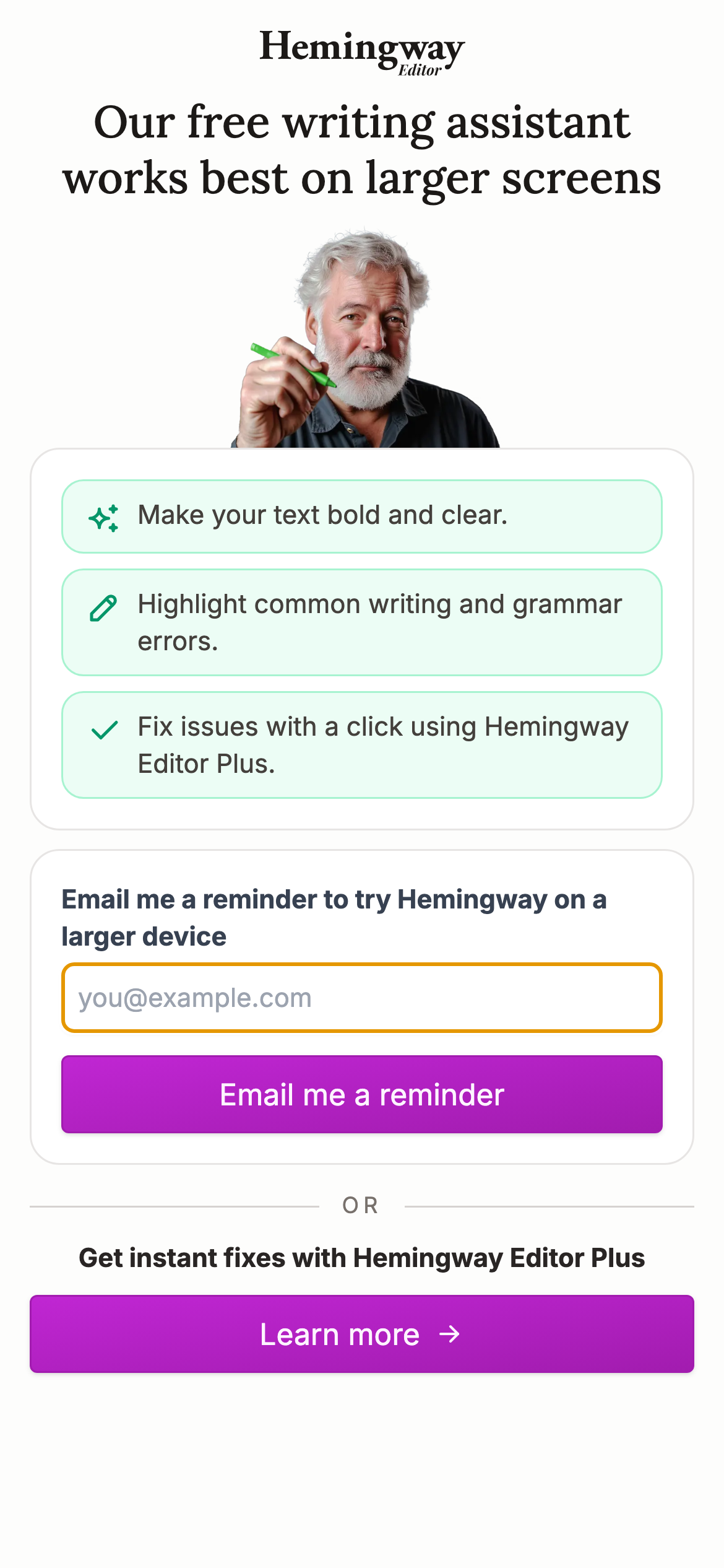 Verify ownership of hemingwayapp.com to unlock widgets, collect verified reviews, and manage your listing.