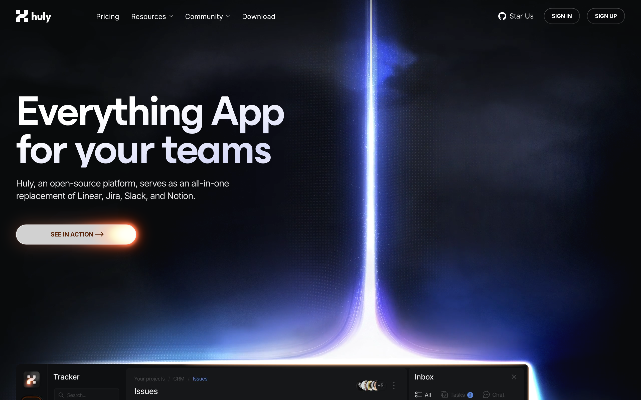 Huly, an open-source platform, serves as an all-in-one replacement of Linear, Jira, Slack, and Notion.