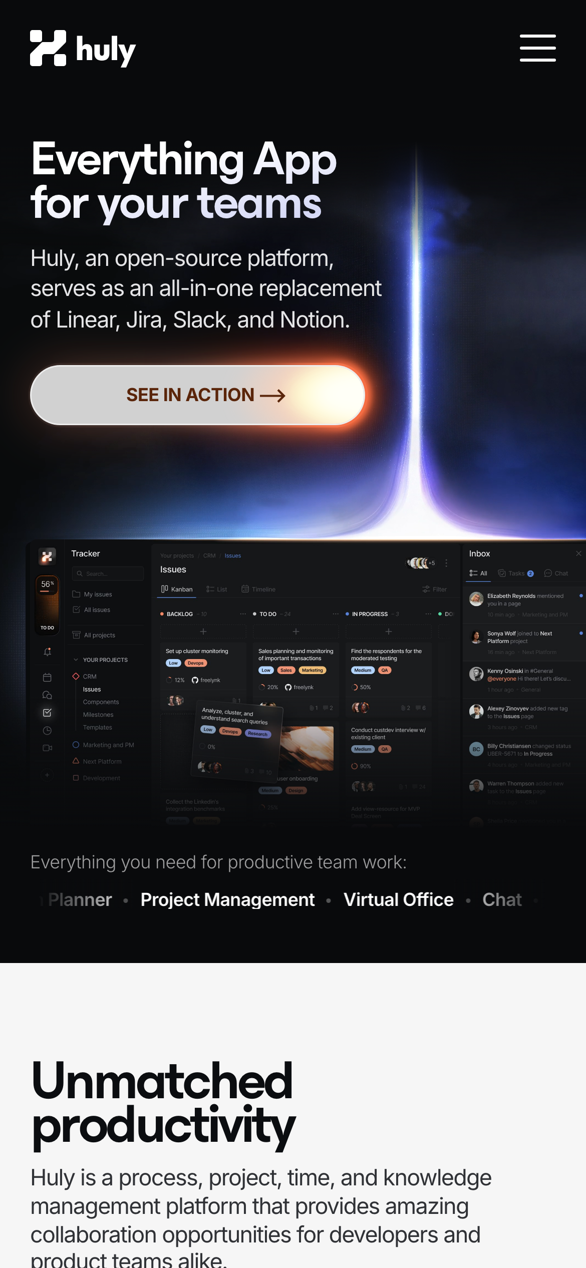 - All-in-one platform replacing Linear, Jira, Slack, and Notion