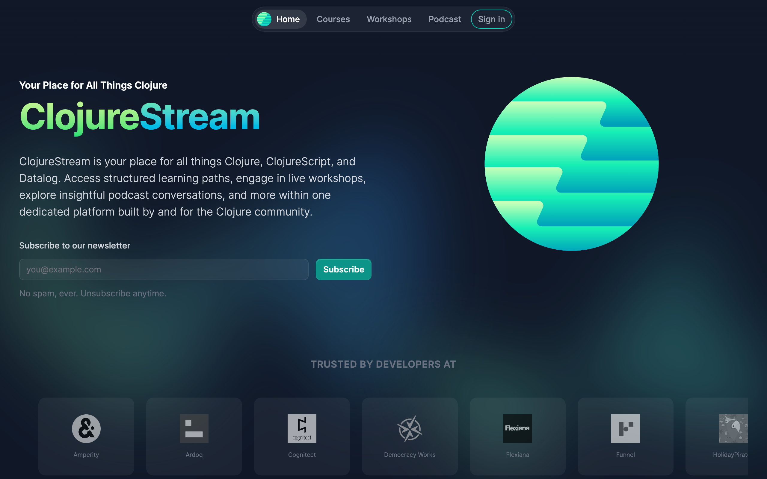 Master Clojure through project-based courses, live workshops, and a thriving community of practitioners.