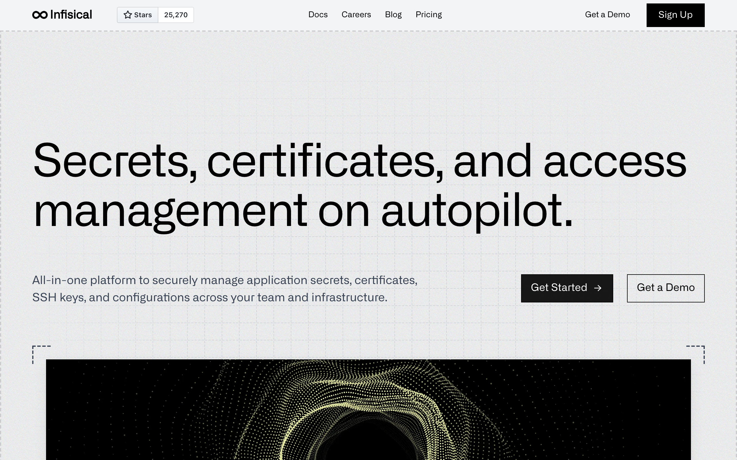 Infisical is an open-source secret management platform designed to help teams securely manage application configuration and secrets across their infrastructure. The platform centralizes secrets handling, enabling teams to sync credentials and configurations while preventing unauthorized access and secret leaks. The platform serves organizations of various sizes, from startups to Fortune 500 enterprises and government agencies. It addresses the common challenge of managing sensitive data across development, staging, and production environments without compromising security. Key features include centralized secret storage, team collaboration capabilities, and integration across multiple infrastructure environments. Infisical offers flexibility through both cloud-hosted and self-hosted deployment options, allowing organizations to choose based on their security and compliance requirements. As an open-source solution, Infisical provides transparency and the ability for teams to audit the codebase. The platform includes a CLI tool for command-line integration and supports synchronization workflows that fit into existing development processes. The tool targets development teams, DevOps engineers, and security-conscious organizations looking to replace manual secret management practices with an automated, auditable system that reduces configuration management overhead while maintaining security standards.