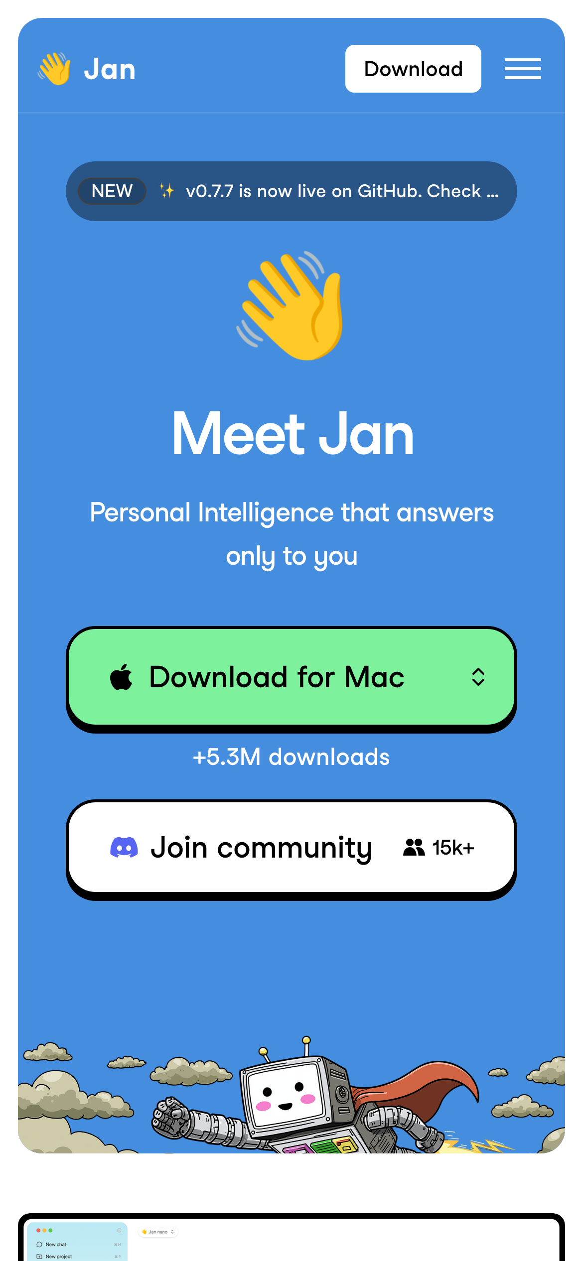 Jan is an open-source ChatGPT alternative designed to run AI models locally on users' devices. As a freely available tool, it provides access to powerful language models without relying on cloud-based services or requiring paid subscriptions. The platform allows users to run open-source AI models directly on their hardware, offering privacy and offline functionality. For those preferring cloud-based options, Jan also supports connections to external models including GPT, Claude, and others, giving users flexibility in how they access AI capabilities. Jan is built for users who prioritize data privacy, want to avoid ongoing subscription costs, or prefer to maintain control over their AI interactions. This includes developers, privacy-conscious individuals, and organizations that need local AI processing capabilities. The project is actively maintained on GitHub, where the source code is publicly available for review and contribution. Being open-source, Jan allows technical users to customize, modify, and extend the software to fit their specific needs. The application functions as a direct alternative to ChatGPT, supporting conversational AI tasks while eliminating dependency on third-party cloud services for basic model operation.