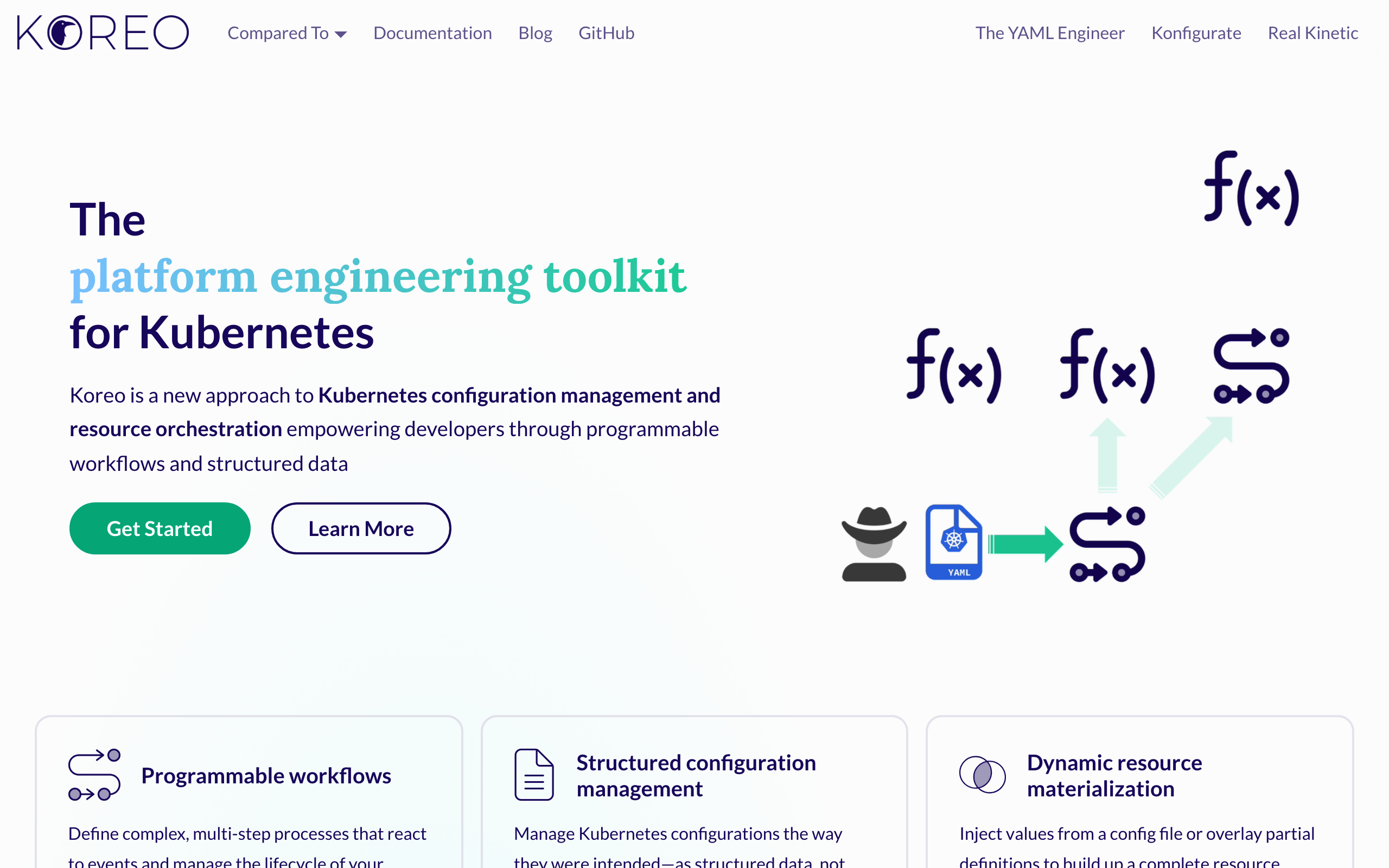 Koreo is an open-source Kubernetes configuration management and resource orchestration platform developed by Real Kinetic. It addresses limitations in existing Infrastructure-as-Code tooling by introducing a programmable workflows approach to managing Kubernetes resources. The platform enables users to define complex, multi-step processes that respond to events and manage the full lifecycle of Kubernetes resources. Rather than treating infrastructure as one-time commands, Koreo uses a controller model similar to Kubernetes itself, allowing for continuous reconciliation and automation. Koreo is designed for developers and platform teams implementing platform engineering. It supports automation ranging from simple deployments to entire cloud environment orchestration, functioning essentially as a programming interface for creating custom Kubernetes controllers. The key differentiator lies in its structured data and workflow approach, which contrasts with traditional Terraform state management challenges. By leveraging Kubernetes-native patterns, Koreo provides a more cohesive solution for teams already operating within Kubernetes ecosystems who need sophisticated resource orchestration capabilities beyond standard declarative configuration tools.