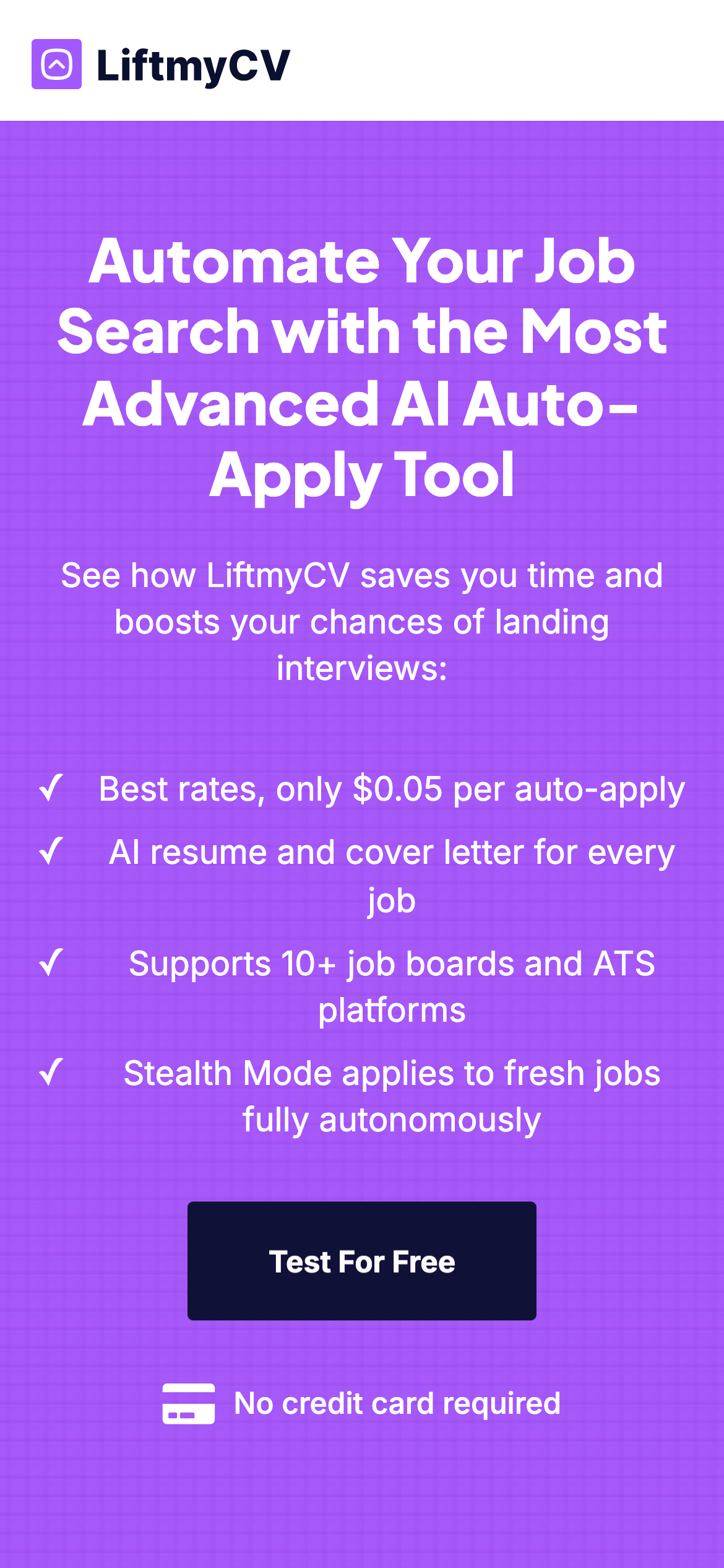 LiftmyCV is an AI-powered job search agent designed to streamline the employment application process. The platform automates job hunting by identifying relevant openings across multiple job boards, matching positions to a user's profile, and submitting applications on their behalf. Beyond automation, LiftmyCV tailors resumes and cover letters to individual job postings, increasing relevance to employer requirements. The tool also provides application tracking functionality, allowing users to monitor their submissions and outcomes in one centralized location. Created by solopreneur Dan Zaitsev, LiftmyCV addresses the time-intensive nature of traditional job searching. The platform is particularly useful for job seekers managing large-scale application campaigns who want to reduce manual effort while maintaining personalized application materials. By leveraging AI to handle repetitive tasks—job discovery, application matching, and document customization—the tool frees users to focus on interview preparation and professional development. LiftmyCV is available with a free tier, making it accessible to job seekers at any stage. The platform integrates job board data with resume optimization, positioning itself as a comprehensive solution rather than a simple job aggregator. For those seeking to improve application volume and relevance without spending hours on traditional job search methods, LiftmyCV offers a practical automation alternative.