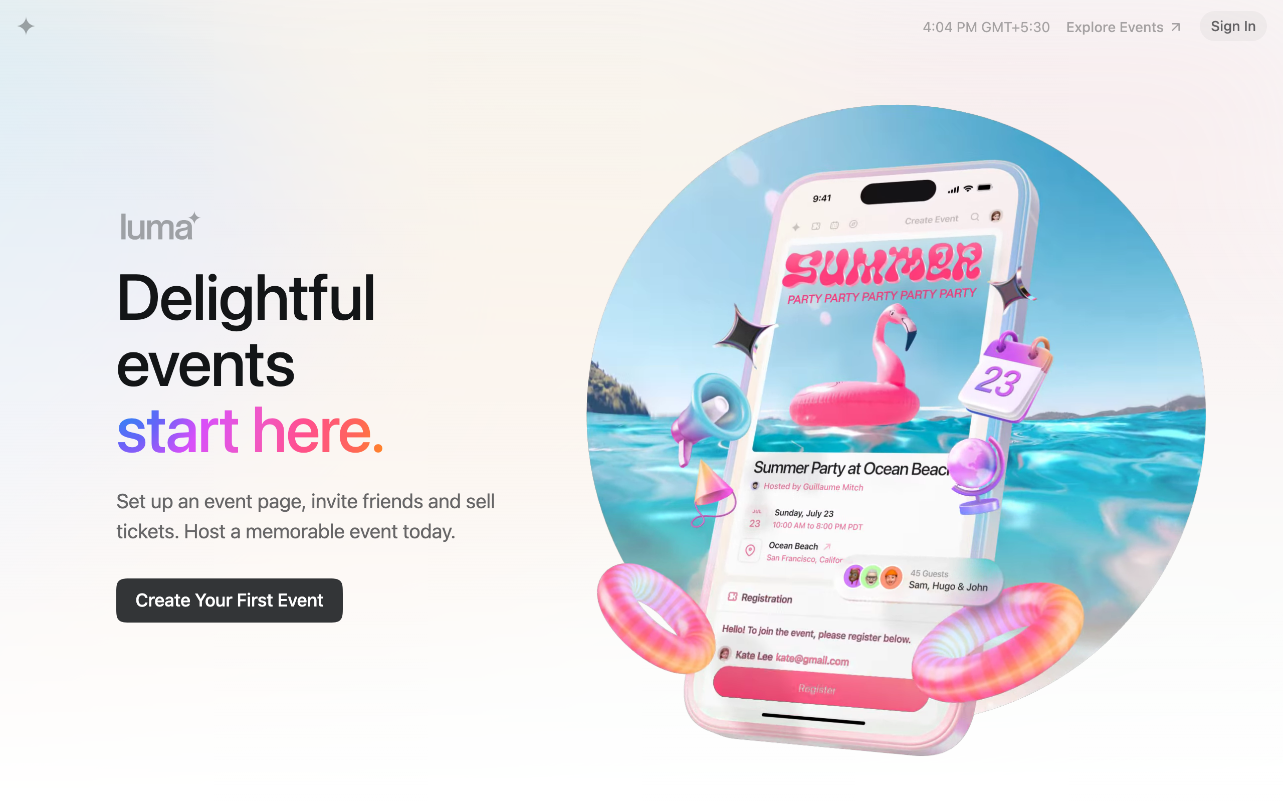 Luma is an event hosting and community management platform that enables users to discover, create, and manage events. The platform allows event organizers to set up events, manage invitations, handle ticket sales, and build communities around their gatherings. Attendees can browse events happening nearby, RSVP to gatherings, and connect with others who share similar interests. The platform serves a diverse user base including event organizers, community leaders, social groups, and individuals looking to discover local activities. Event creators can customize event details, set pricing structures, and manage attendee information through a centralized dashboard. The platform includes features for community building, allowing organizers to maintain ongoing relationships with attendees beyond individual events. Luma differentiates itself by combining event creation tools with community discovery features in a single platform. Rather than serving solely as a ticketing system or purely as an event calendar, it integrates both functions to create a more complete event ecosystem. The platform emphasizes ease of use, enabling organizers to set up events without requiring technical expertise while providing attendees with a streamlined way to find and join gatherings. The service operates on a paid subscription model, making it a commercial solution for those seeking comprehensive event management and community engagement capabilities.