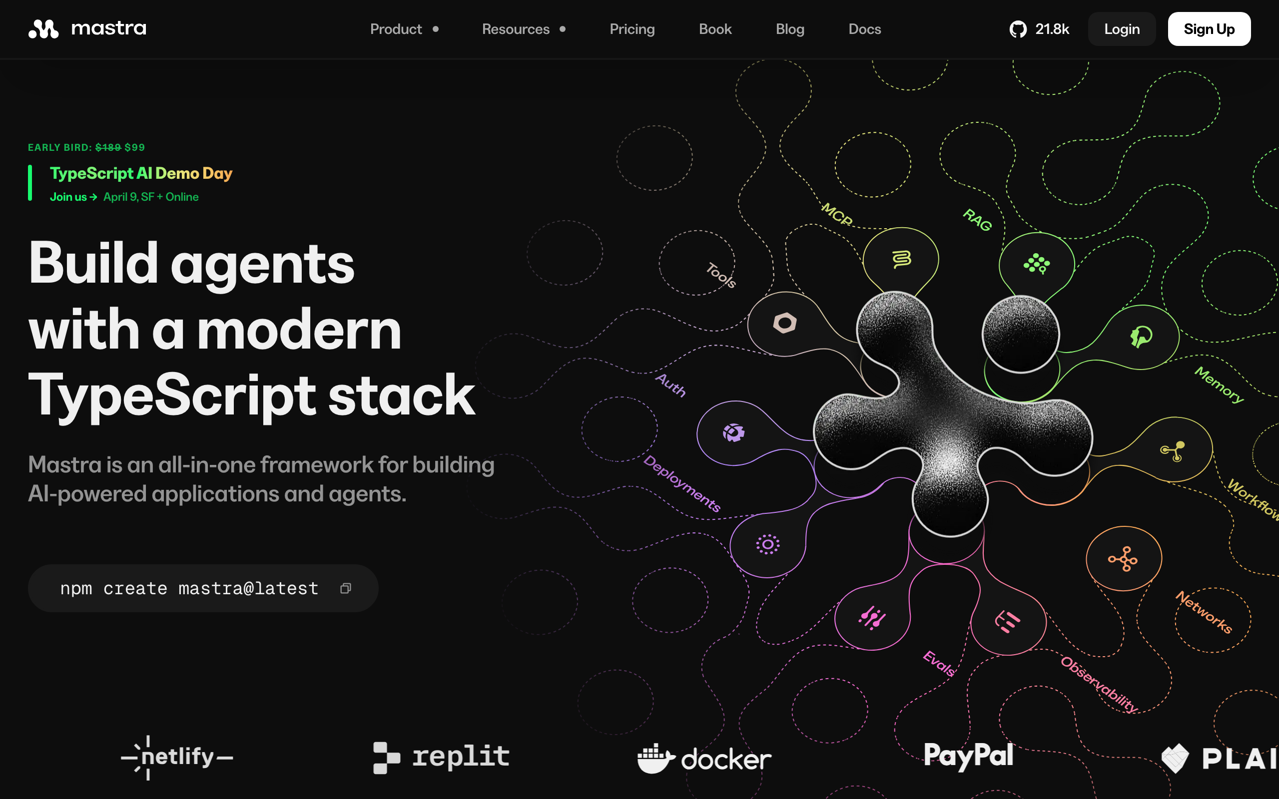 Mastra is an open-source TypeScript framework designed for building AI agents and workflows. It provides developers with essential tools for creating intelligent applications, including built-in support for agent workflows, memory management, and real-time streaming capabilities. The framework is built for TypeScript developers who need a structured approach to AI agent development. It offers an interactive playground for testing and experimenting with agents, alongside evaluation tools for assessing agent performance. Mastra also includes tracing functionality, allowing developers to monitor and debug agent behavior throughout execution. Key features include workflow orchestration for managing complex agent processes, persistent memory systems for maintaining context, and streaming support for real-time interactions. The interactive playground enables rapid prototyping without requiring extensive setup, while the integrated evals system helps developers validate agent outputs and behavior. Available on npm as @mastra/core, the project is actively maintained on GitHub and benefits from community contributions. The framework targets developers building production-grade AI applications who want reliable tooling and clear visibility into agent operations. Mastra combines essential infrastructure components needed for agent development into a cohesive TypeScript-first ecosystem, eliminating the need to integrate multiple disparate tools.