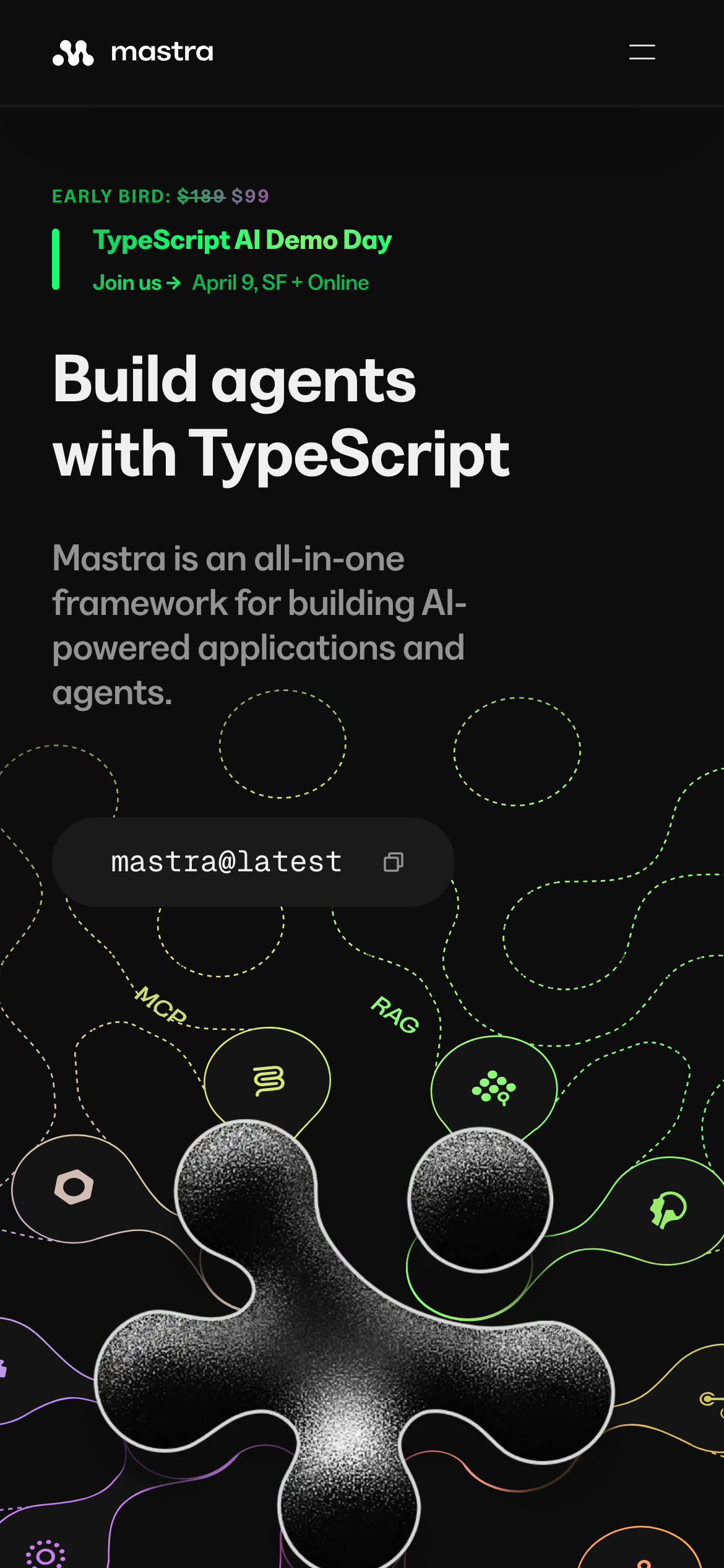 The TypeScript agent framework with workflows, memory, streaming, an interactive playground, evals, and tracing.