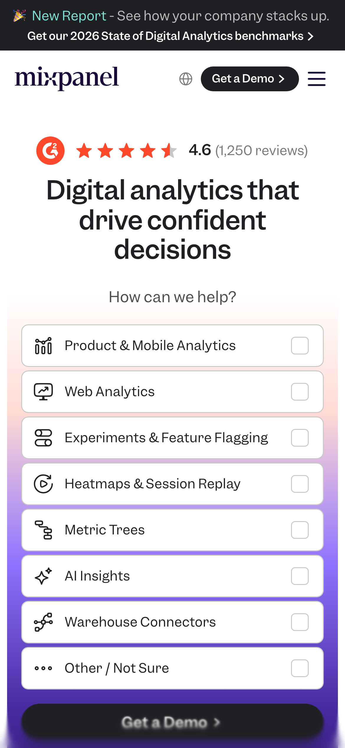 Verify ownership of mixpanel.com to unlock widgets, collect verified reviews, and manage your listing.