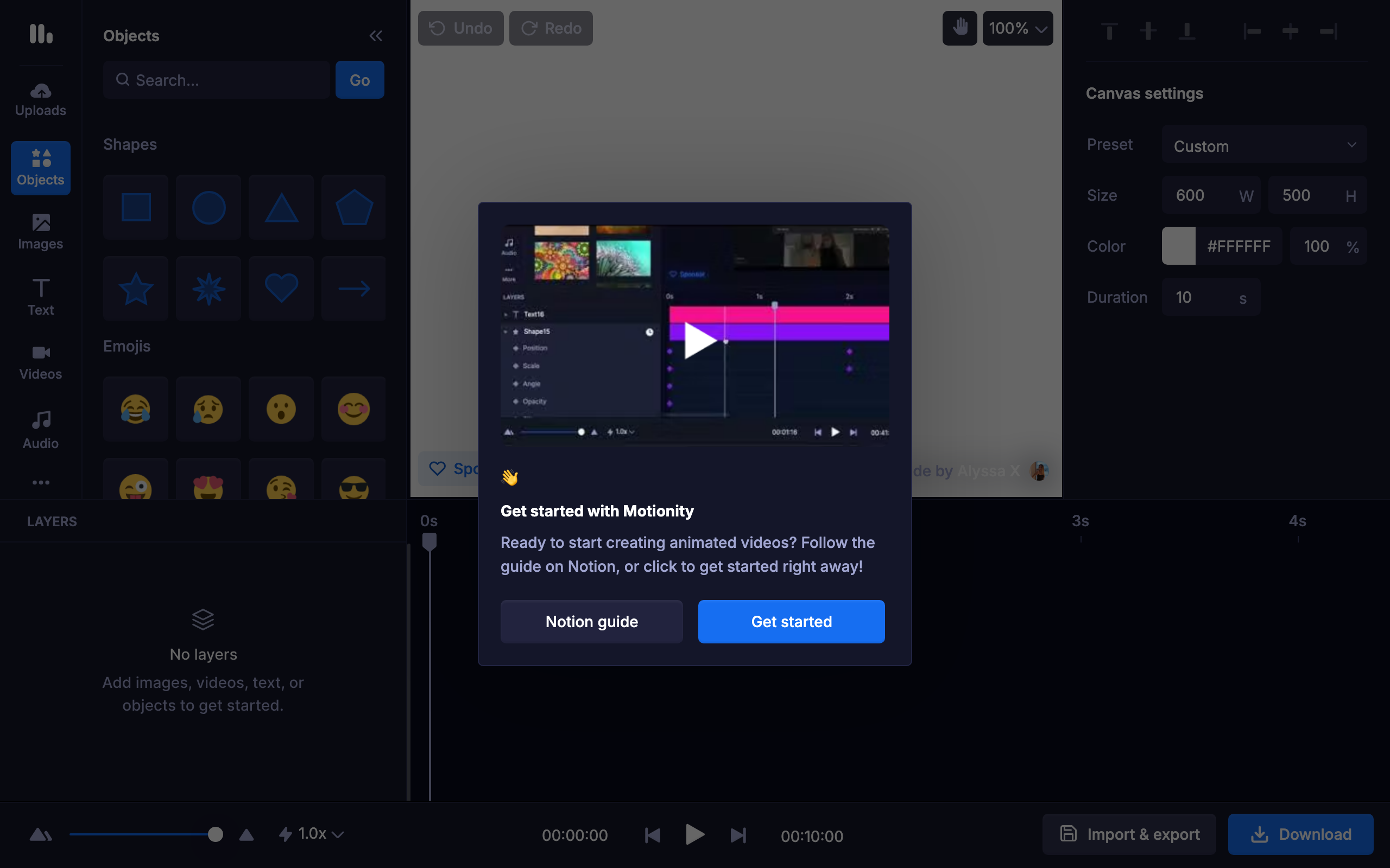 Create animated videos for free with Motionity, an open source motion graphics editor with keyframing, masking, filters, text animations, and more.