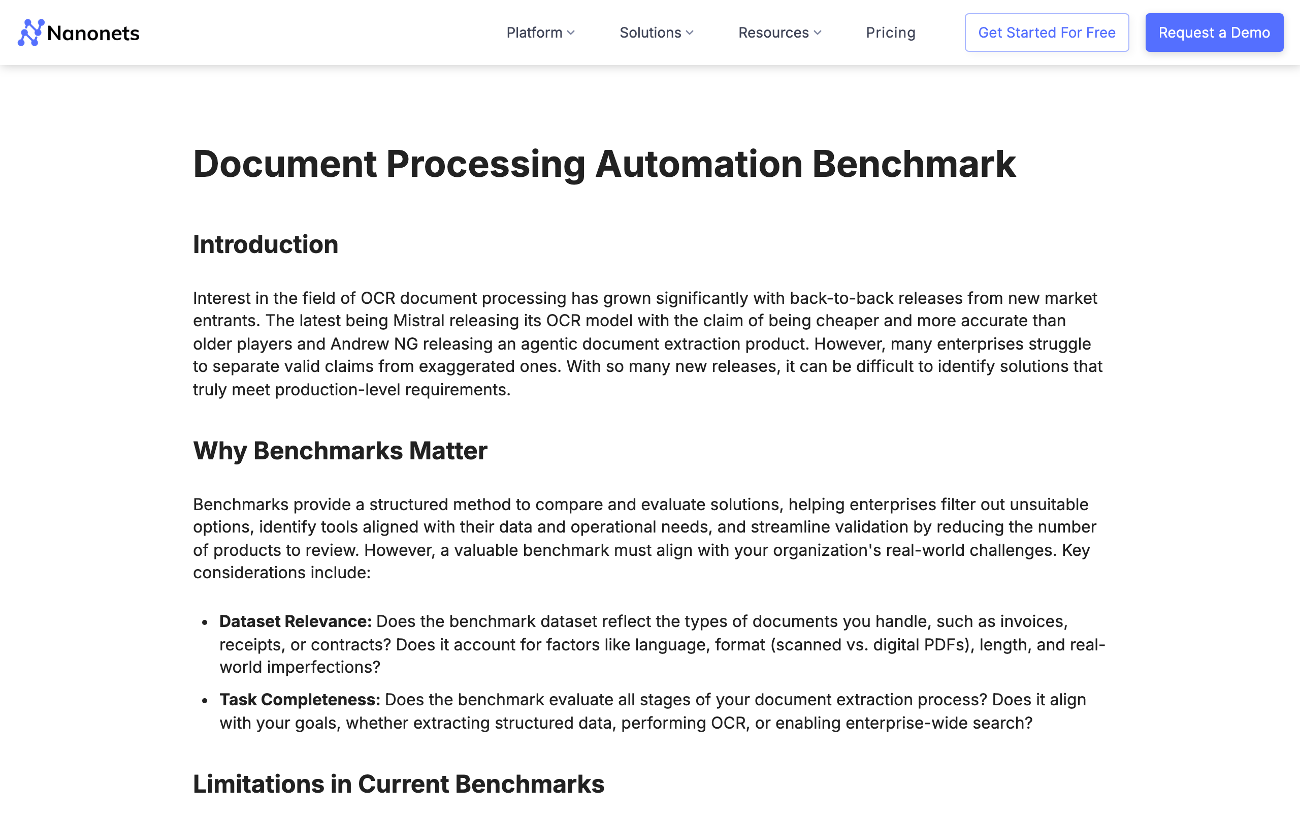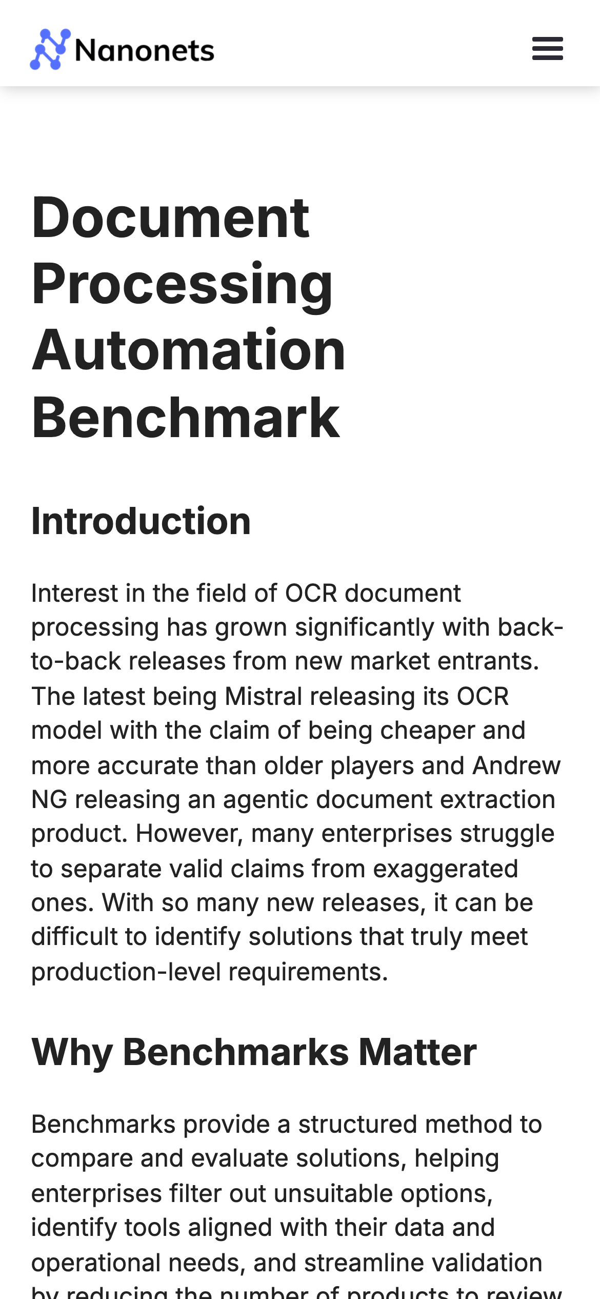 - Standardized testing framework that enables fair comparison across different OCR and document extraction models