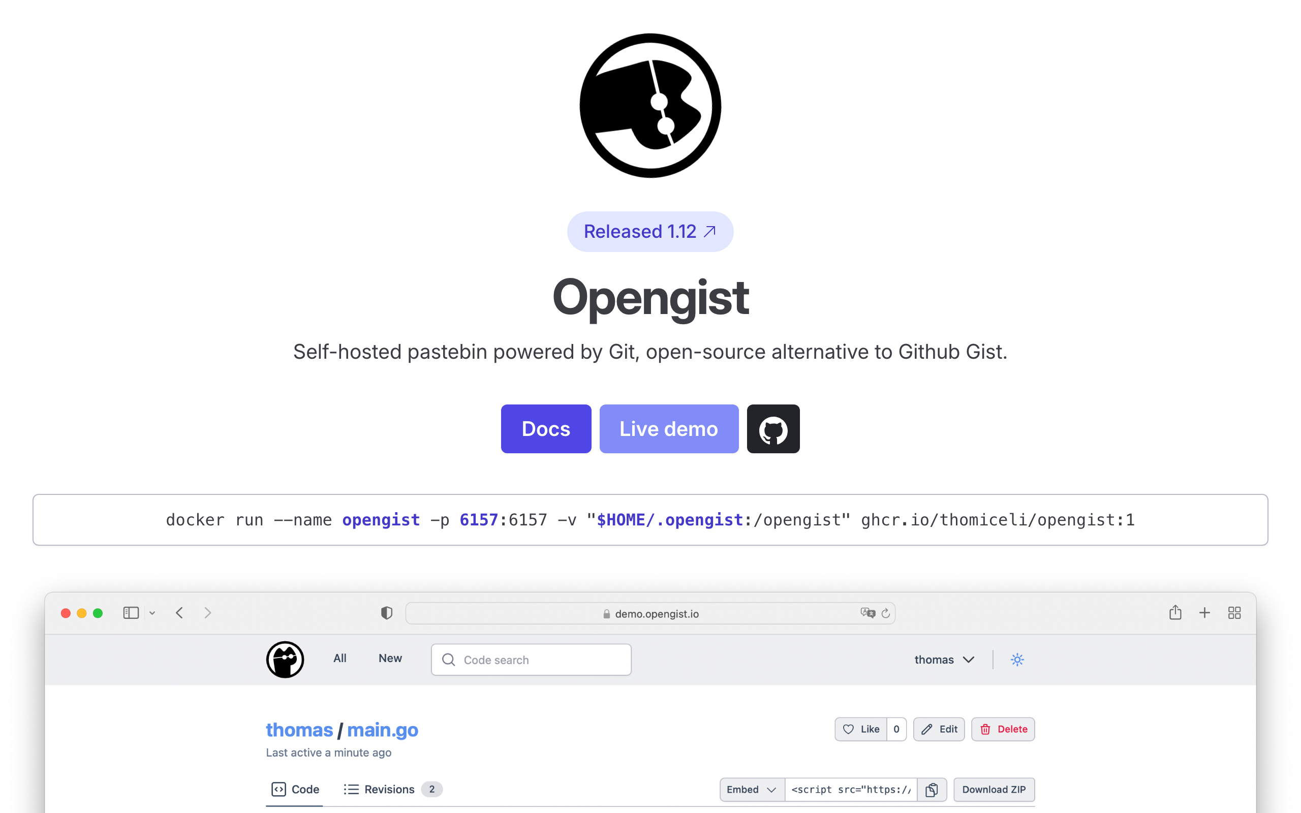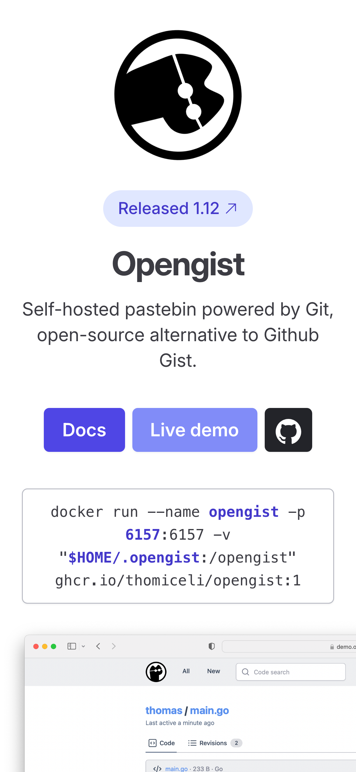 Opengist is a self-hosted pastebin service powered by Git, designed as an open-source alternative to GitHub Gist. It allows users to create, store, and share code snippets and text pastes with full version control capabilities. All snippets are stored in a Git repository, enabling users to access and modify content through both a web interface and standard Git commands. The platform is intended for developers who need a lightweight, self-contained solution for snippet management without relying on external services. By leveraging Git as its backend, Opengist provides built-in version history, branching capabilities, and collaborative features inherent to Git workflows. Key features include the ability to self-host the service on personal infrastructure, eliminating dependency on third-party platforms, and the flexibility to integrate with existing Git-based workflows. The open-source nature allows for customization and community contributions. Opengist is available free of charge as an open-source project, making it suitable for individuals, teams, and organizations seeking control over their code snippet management infrastructure. The project is maintained on GitHub and includes comprehensive documentation for deployment and usage.
