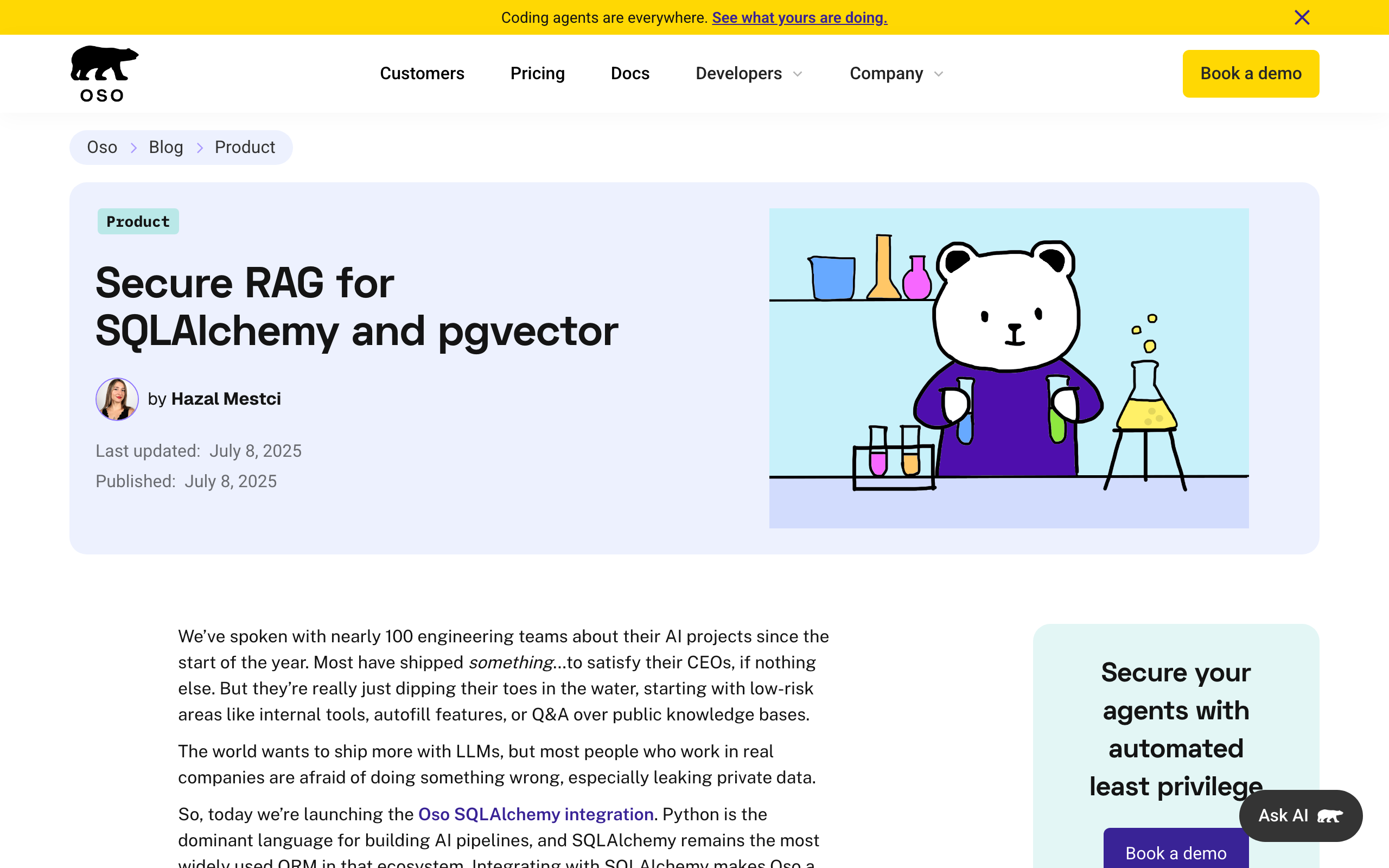 Howdy hackers - sharing a drop in integration for SQL Alchemy from Oso. Shipping this to make it easier to maintain a central authorization layer across your application, new RAG pipelines and other agentic applications that use SQLAlchemy as their ORM