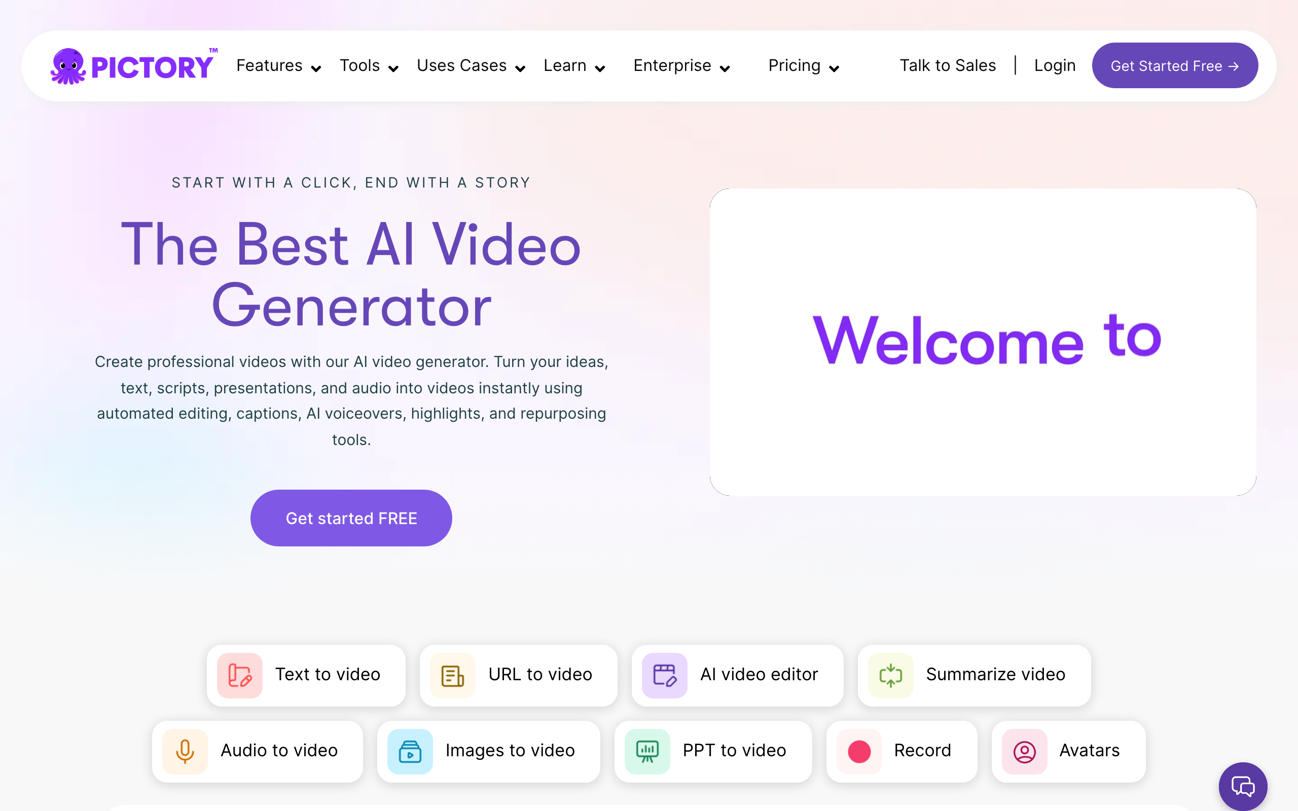 Pictory is an AI-powered video generation platform that automates the conversion of text content and articles into short-form videos. The tool is designed to streamline video creation for users who lack technical video editing skills or want to accelerate their content production workflow. The platform works by processing written content and using artificial intelligence to generate accompanying visuals, transitions, and formatting to create finished video outputs. This allows users to repurpose blog posts, scripts, and other text-based materials into video content suitable for social media, websites, and other digital platforms. Pictory is intended for content creators, marketers, educators, and businesses seeking to expand their video content library without investing significant time in manual video production. The tool addresses the gap between written content creation and video content distribution by automating the intermediate steps. The platform offers a free tier option, making it accessible for users to test the service before committing to paid plans. This approach allows potential users to evaluate whether the generated video quality and features meet their specific needs. By reducing the technical barriers and time investment associated with video creation, Pictory enables a broader range of users to produce video content from existing text-based materials.