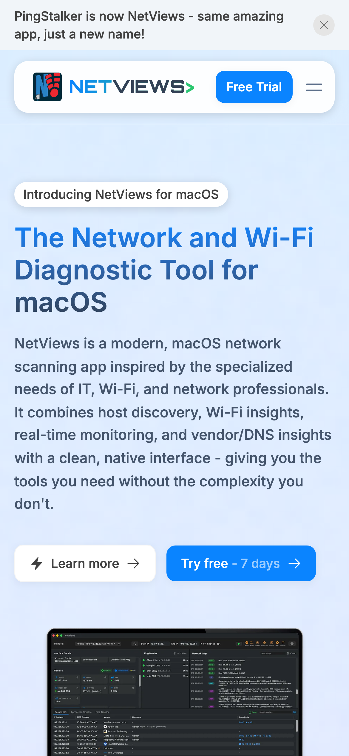 PingStalker is an open-source macOS network utility designed for developers and IT professionals who need comprehensive visibility into local network activity. Built by a developer frustrated with CLI limitations, the tool provides a graphical interface that consolidates popular network discovery and monitoring capabilities into a single application. The utility helps users understand what's happening across their LAN and WLAN by combining essential networking tools in one place. Rather than switching between multiple command-line utilities, users can access network scanning and diagnostics through an intuitive GUI designed for those comfortable working in terminal environments but seeking more efficient visualization options. PingStalker targets technical users—particularly developers and network administrators—who need reliable network diagnostics without sacrificing the power and control they expect from professional-grade tools. The open-source model allows users to inspect the code, contribute improvements, and deploy it in their specific environments without licensing constraints. The application focuses on practical network troubleshooting and monitoring rather than simplified consumer features, making it suitable for technical teams managing infrastructure or developers debugging network-related issues in development environments.