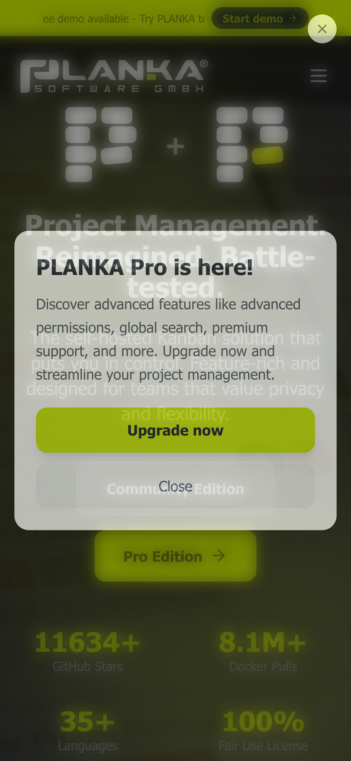 Planka is a self-hosted, open-source kanban board designed for workgroup collaboration and agile project management. It functions as a privacy-focused alternative to Trello, enabling teams to organize tasks and workflows in real-time without relying on third-party cloud services. The platform supports unlimited users and features real-time collaboration capabilities, allowing multiple team members to work simultaneously on the same board. As a self-hosted solution, Planka gives organizations full control over their data and infrastructure, making it suitable for teams with specific compliance requirements or privacy concerns. The application is GDPR compliant, addressing regulatory considerations for European organizations and those handling sensitive information. Planka is available as a free Community Edition with straightforward deployment options, including Docker support. The project is actively maintained on GitHub, where the source code is publicly available for review, customization, and contribution. This open-source approach allows technical teams to audit the codebase, implement custom features, or self-host without licensing costs. The tool is intended for agile teams, project managers, and organizations seeking a transparent, self-controlled alternative to commercial kanban solutions. It appeals to businesses prioritizing data sovereignty, teams requiring unlimited user seats, and developers who want to modify and integrate the tool into their existing infrastructure.