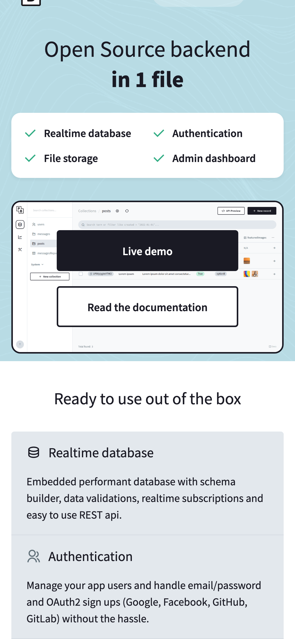 Backend for your next SaaS and Mobile app in one file. )