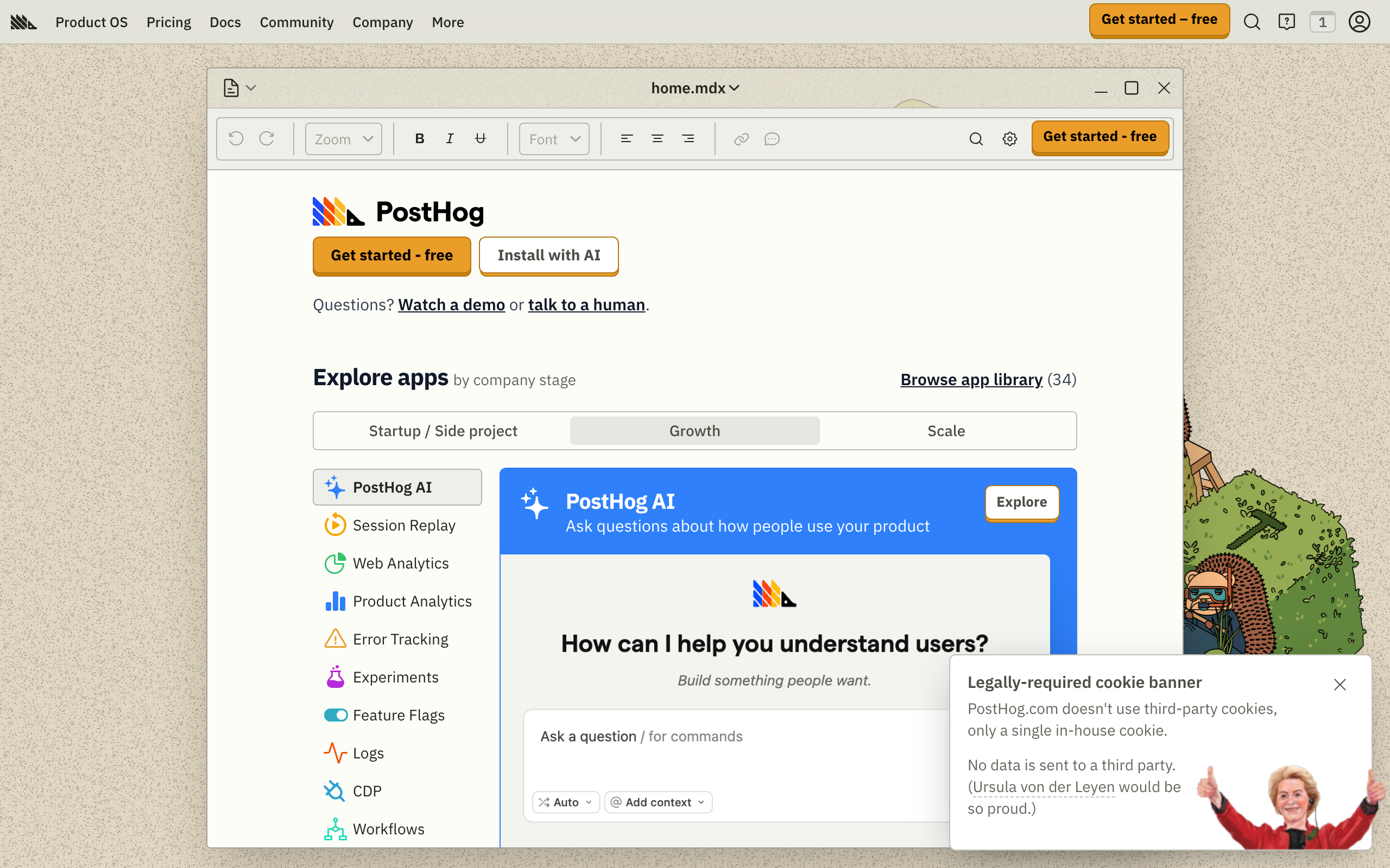 Verify ownership of posthog.com to unlock widgets, collect verified reviews, and manage your listing.