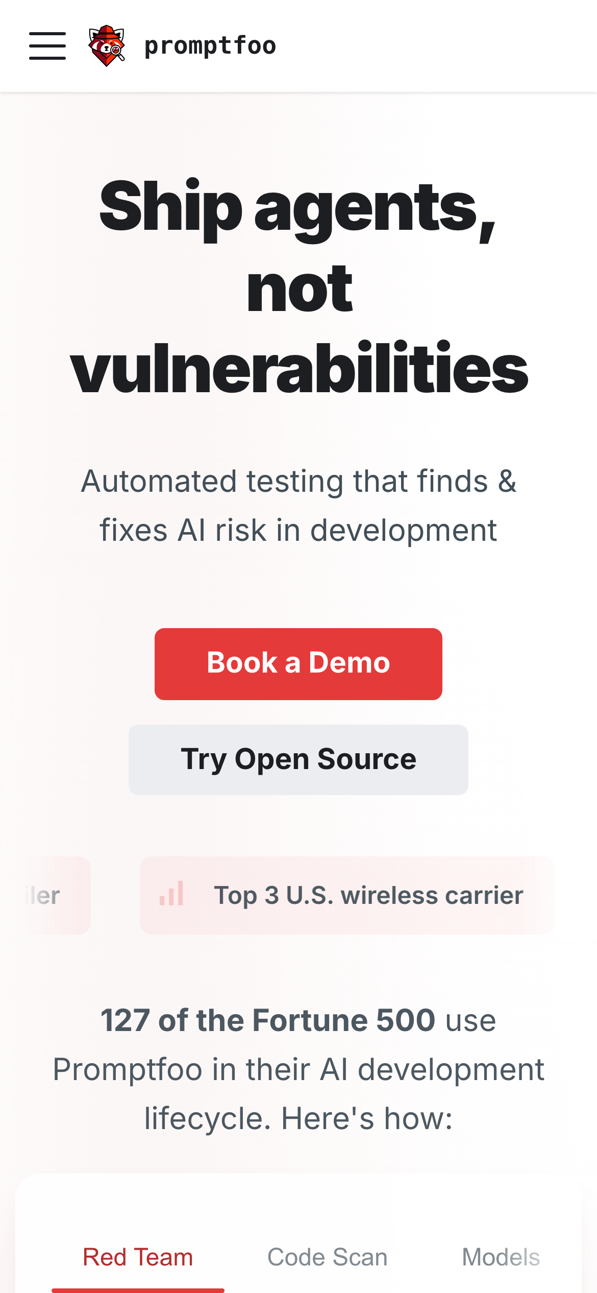 Promptfoo is an open-source LLM evaluation framework designed to test and validate language model applications during development. The tool enables developers and organizations to systematically evaluate prompt performance, identify vulnerabilities, and implement red teaming exercises before deployment. The platform serves developers, AI engineers, and security teams who need to ensure their LLM applications perform reliably across different scenarios. Promptfoo provides automated testing capabilities to catch potential issues early in the development cycle, supporting quality assurance for AI-powered features and products. Key capabilities include running comparative evaluations across multiple prompts and models, testing against adversarial inputs, and generating detailed reports on model behavior and safety. The framework integrates into development workflows and supports various LLM providers, making it adaptable to different project requirements. As an open-source project, Promptfoo is freely available and maintained on GitHub, allowing teams to customize the tool for their specific needs. The platform has gained adoption among enterprise organizations and individual developers seeking structured approaches to LLM evaluation and security testing. It addresses the growing need for systematic validation practices as language models become more prevalent in production applications.