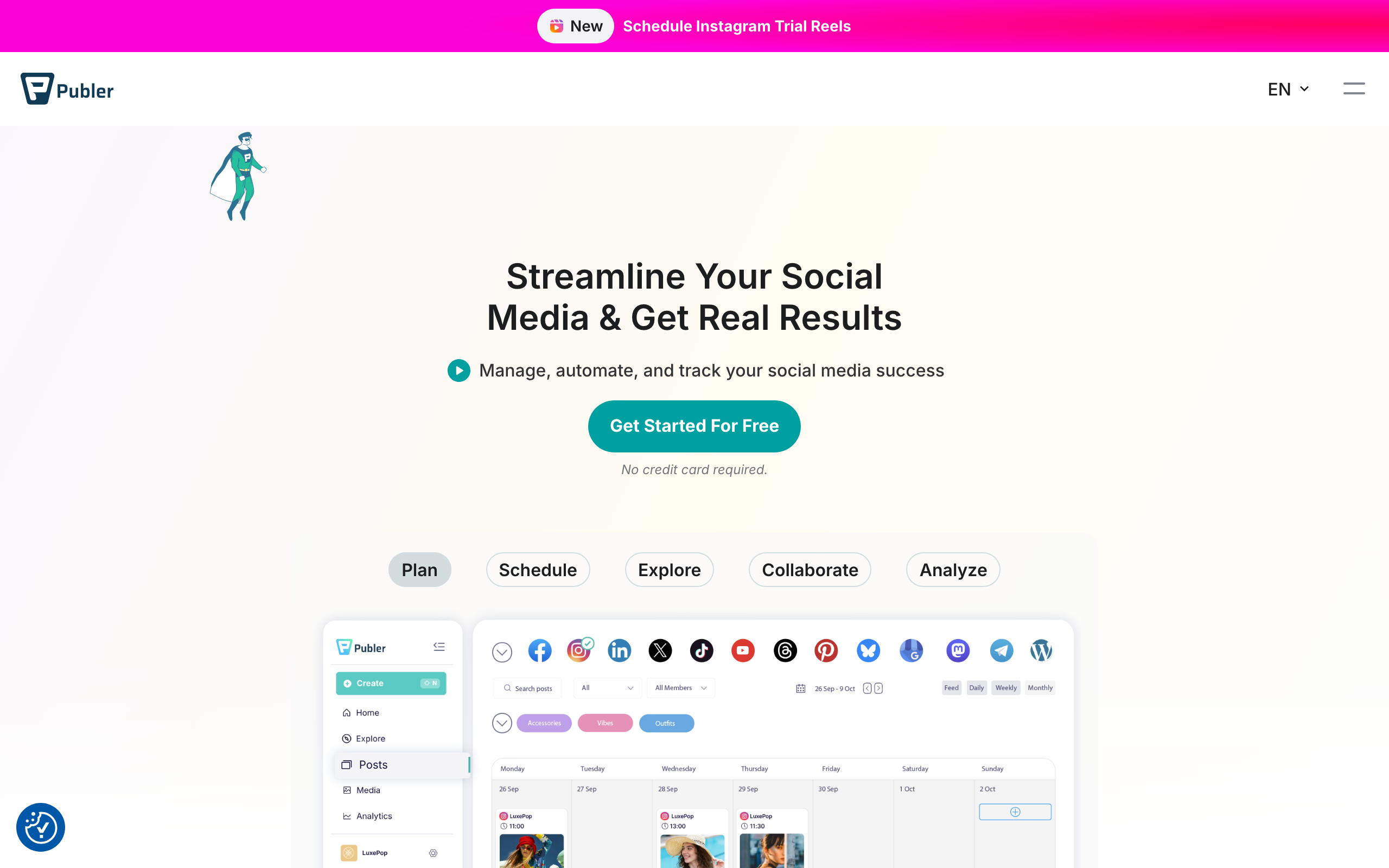 Publer is a social media scheduling and analytics platform designed for teams managing multiple social accounts. The tool enables users to plan, schedule, and publish content across various social media channels from a centralized dashboard, reducing the need to switch between different platforms. The platform offers scheduling capabilities that allow teams to plan posts in advance and automate their distribution. It includes analytics features that track post performance and audience engagement metrics, helping users understand what content resonates with their followers. Publer is built with team collaboration in mind, providing features that support multiple users working together on social media strategy and content creation. The platform supports management of multiple social accounts, making it suitable for agencies, marketing teams, and organizations handling several brand profiles. The tool consolidates social media management tasks into one interface, including account management, content scheduling, team coordination, and performance analysis. This approach aims to streamline workflows for teams that previously relied on multiple disconnected tools. Publer is suited for marketing professionals, social media managers, content creators, and teams in agencies or larger organizations that need coordinated social media management across multiple platforms and accounts.