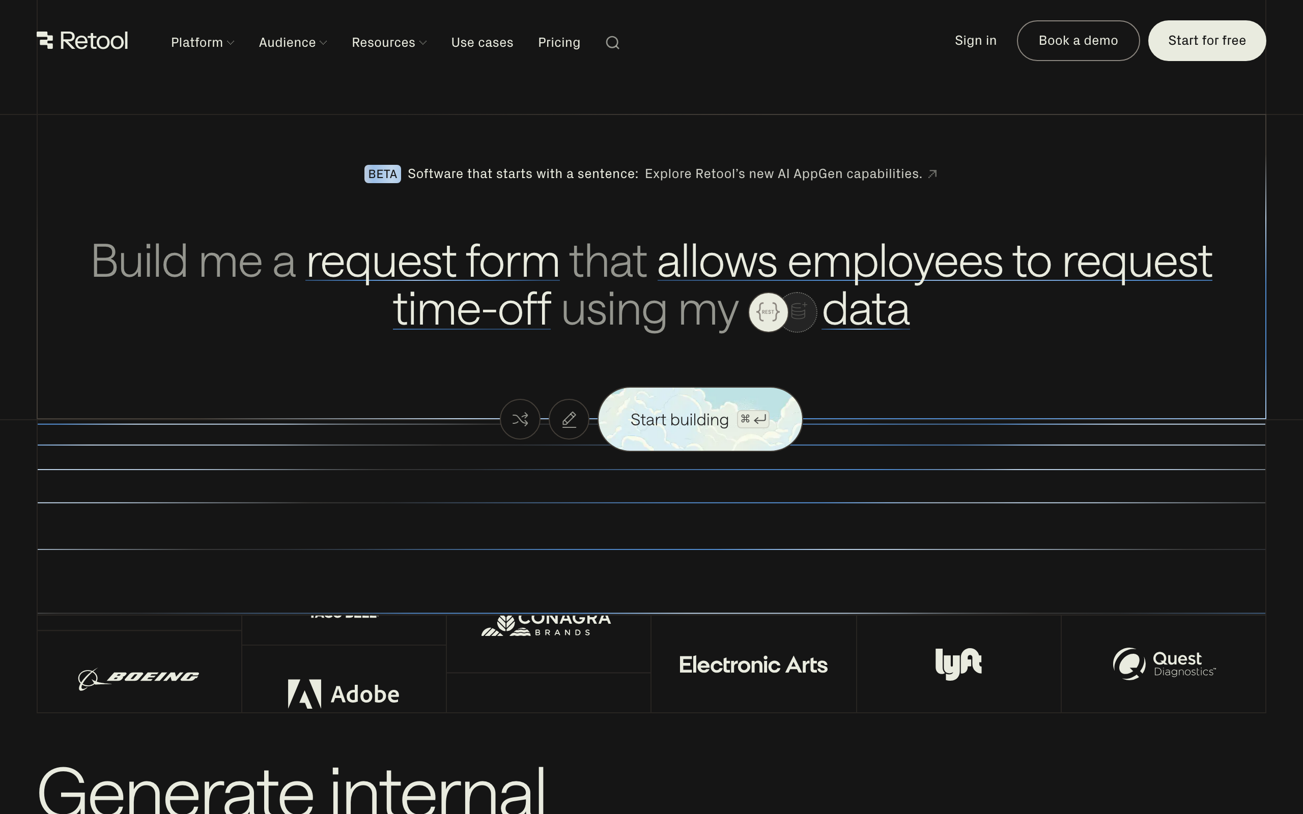 Build, deploy, and manage internal tools with Retool’s unified engine. Connect to any database, API, or LLM. Leverage AI throughout your business.