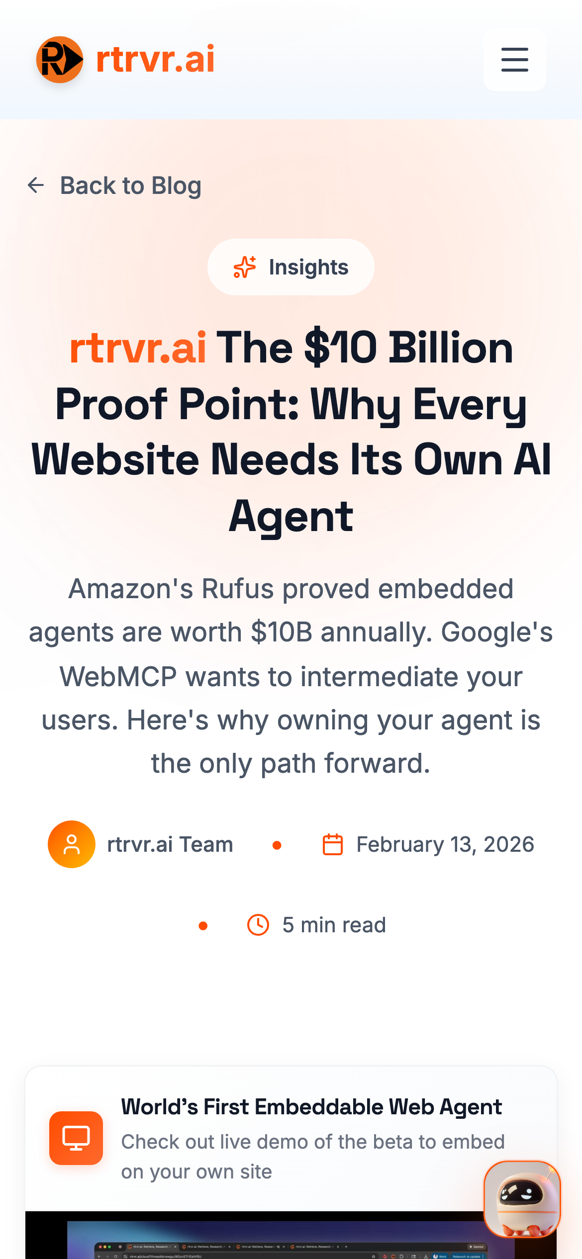 Rover is the world's first Embeddable Web Agent, a chat widget that lives on your website and takes real actions for your users. Clicks buttons. Fills forms. Runs checkout. Guides onboarding. All inside your UI. One script tag. No APIs to expose. No code to maintain. We built Rover because we t