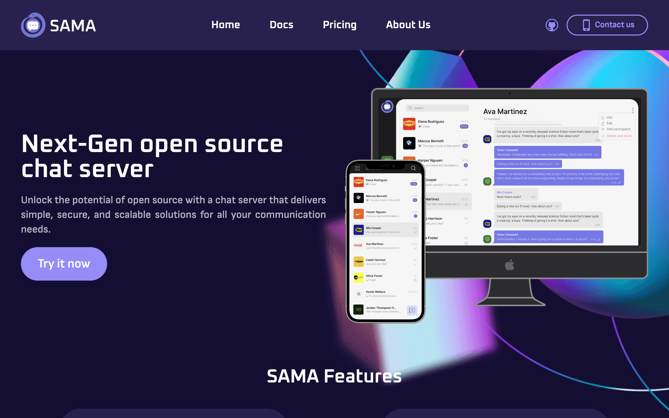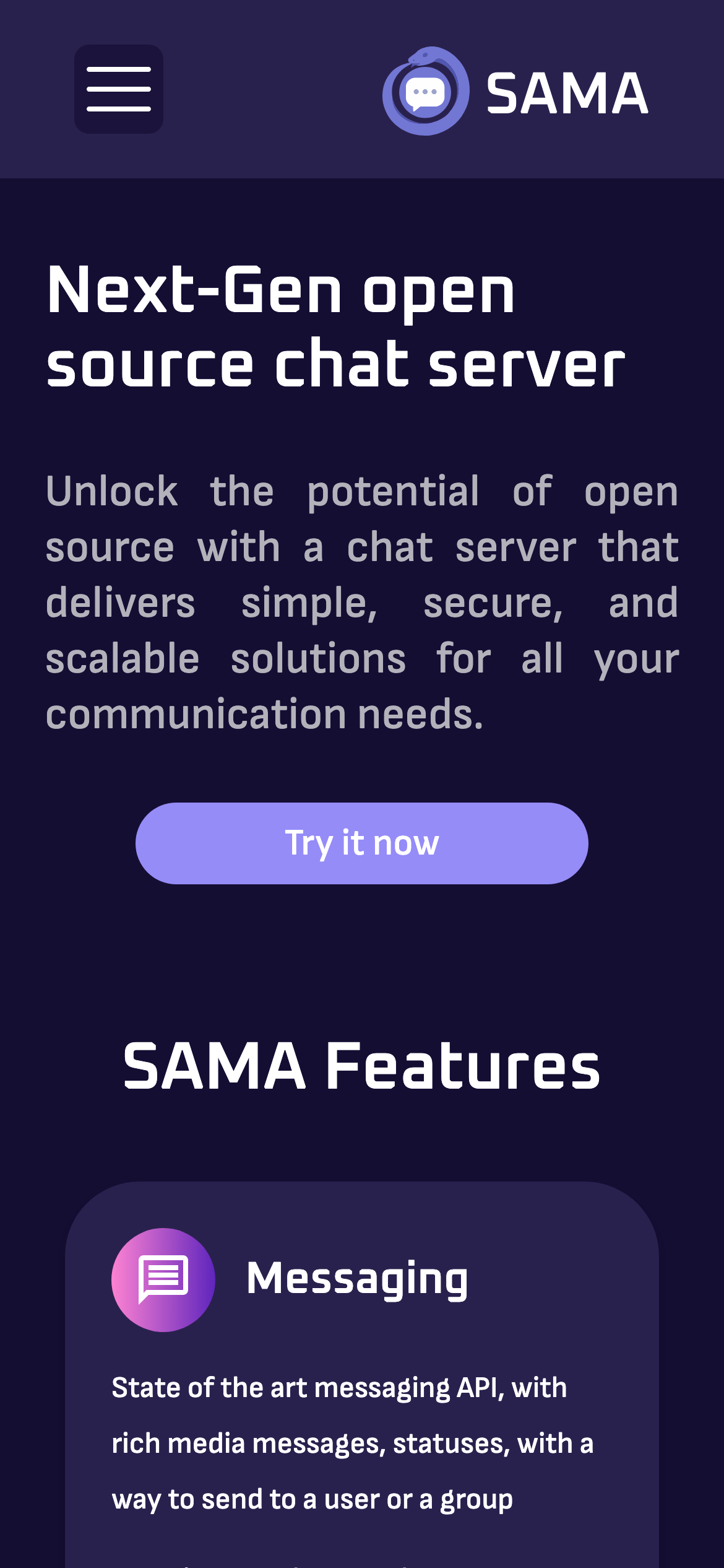 SAMA is an open-source chat server designed for developers and organizations seeking to deploy messaging infrastructure on their own servers. The platform provides both server components and client applications for mobile and web environments, enabling self-hosted messaging solutions without reliance on third-party services. The system includes end-to-end encryption by default, ensuring message privacy between users. SAMA also features clustering capabilities, allowing administrators to scale their deployments across multiple servers for improved reliability and performance. This makes it suitable for teams requiring robust, distributed messaging infrastructure. As an open-source project, SAMA's codebase is publicly available and can be modified to meet specific organizational needs. The platform targets developers who want to maintain control over their messaging systems, enterprises with privacy requirements, and organizations preferring to avoid vendor lock-in with commercial chat solutions. SAMA positions itself as an alternative to managed chat services by combining straightforward deployment with advanced features typically found in enterprise messaging platforms. Its self-hosted nature appeals to users concerned with data sovereignty and those operating in regulated industries where on-premise solutions are preferred.