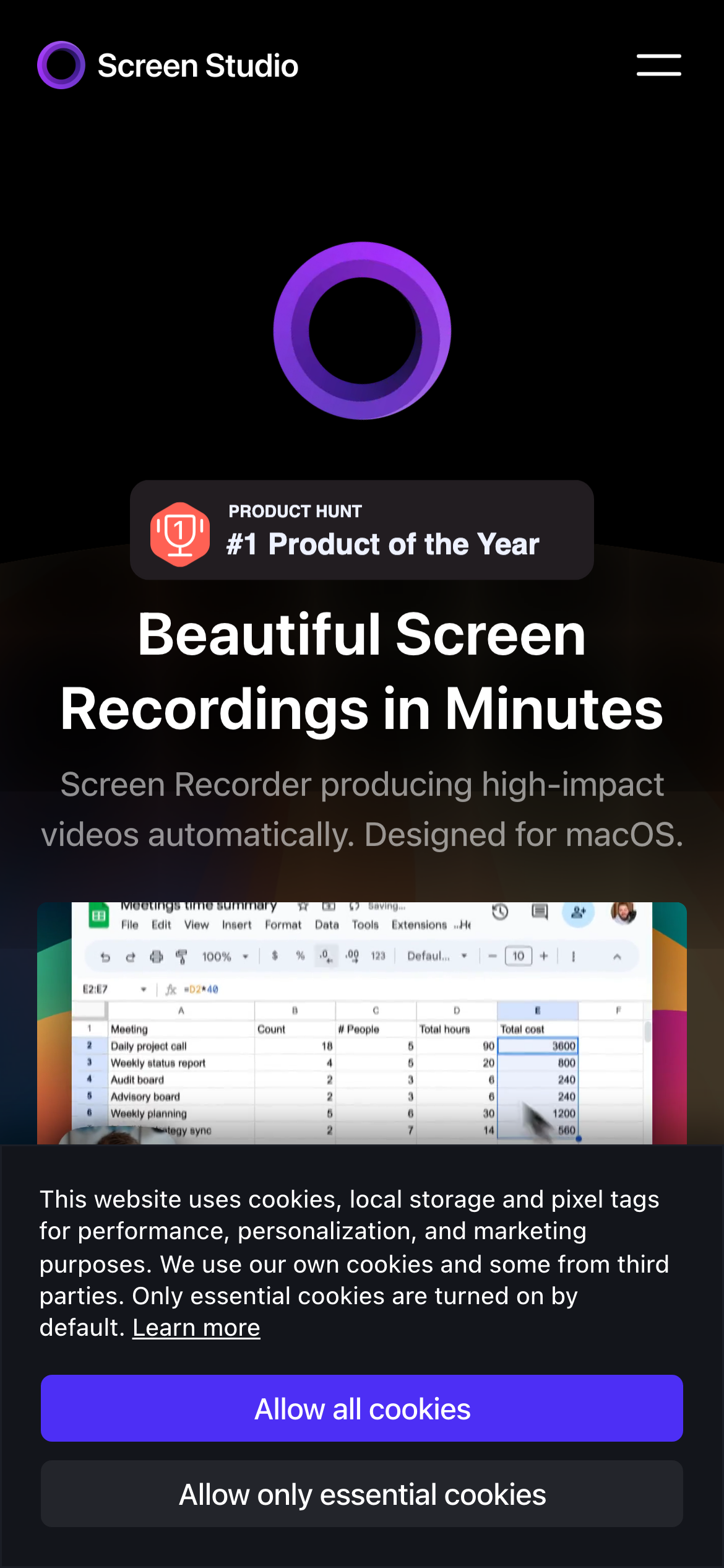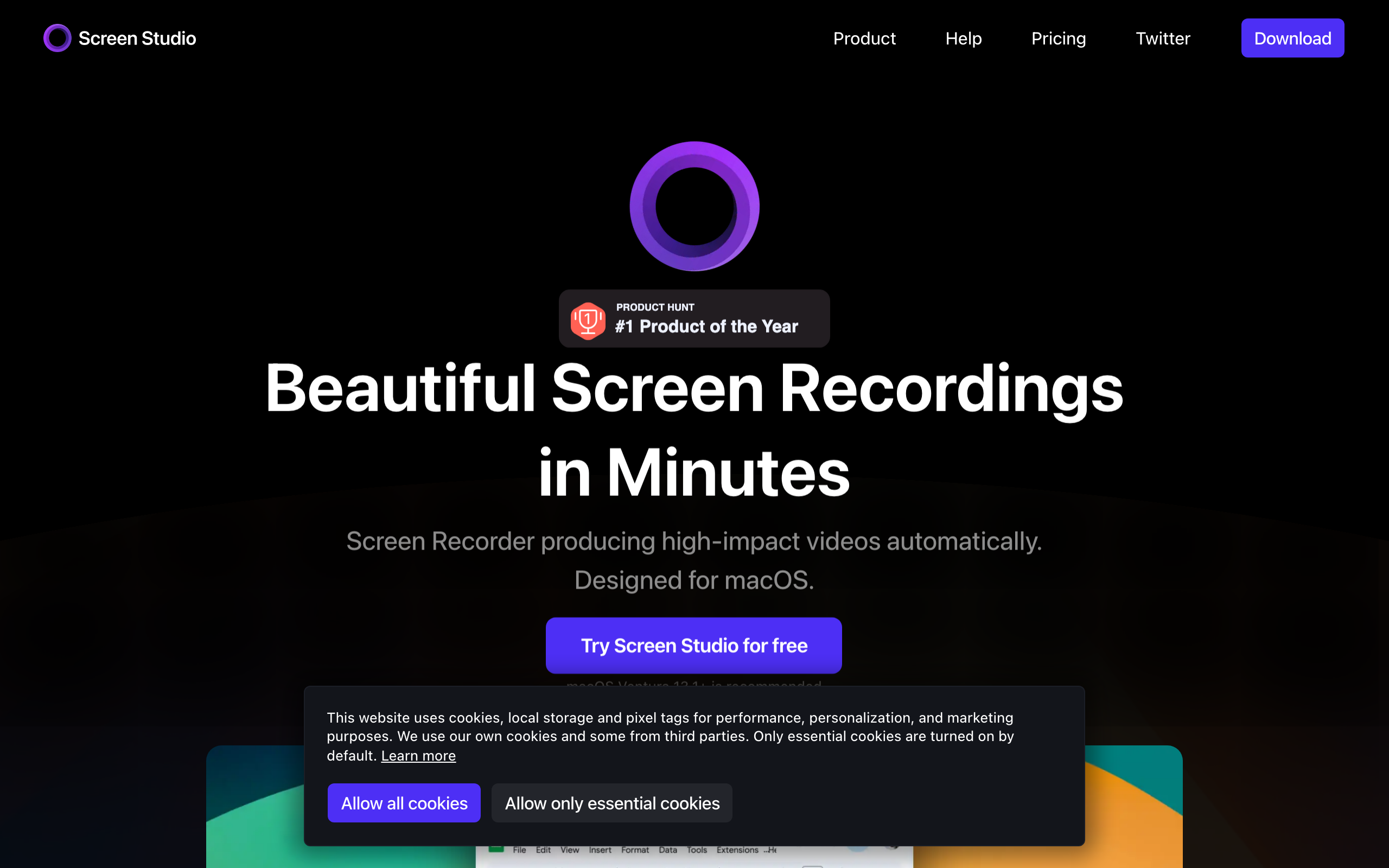 Screen Studio is a screen recording application designed for macOS that enables users to create polished product demonstrations, educational courses, tutorials, and social media videos. The tool specializes in capturing screen activity with professional-quality output suitable for business and educational purposes. The software offers several built-in features to enhance recordings, including automatic zoom functionality that follows mouse actions, smooth mouse movement interpolation, and various effects and animations. These capabilities allow creators to emphasize important areas of the screen and improve visual clarity without requiring external editing software. Screen Studio targets product managers, educators, content creators, and anyone needing to produce high-quality screen recordings. It is particularly suited for teams creating product documentation, software tutorials, or marketing materials where visual clarity and professional presentation are important. Available as open source software, Screen Studio provides an accessible option for Mac users seeking screen recording capabilities without licensing costs. The tool streamlines the recording and enhancement process by integrating common effects directly into the recording workflow rather than requiring post-production editing, making it efficient for users who need quick turnaround times on video content.