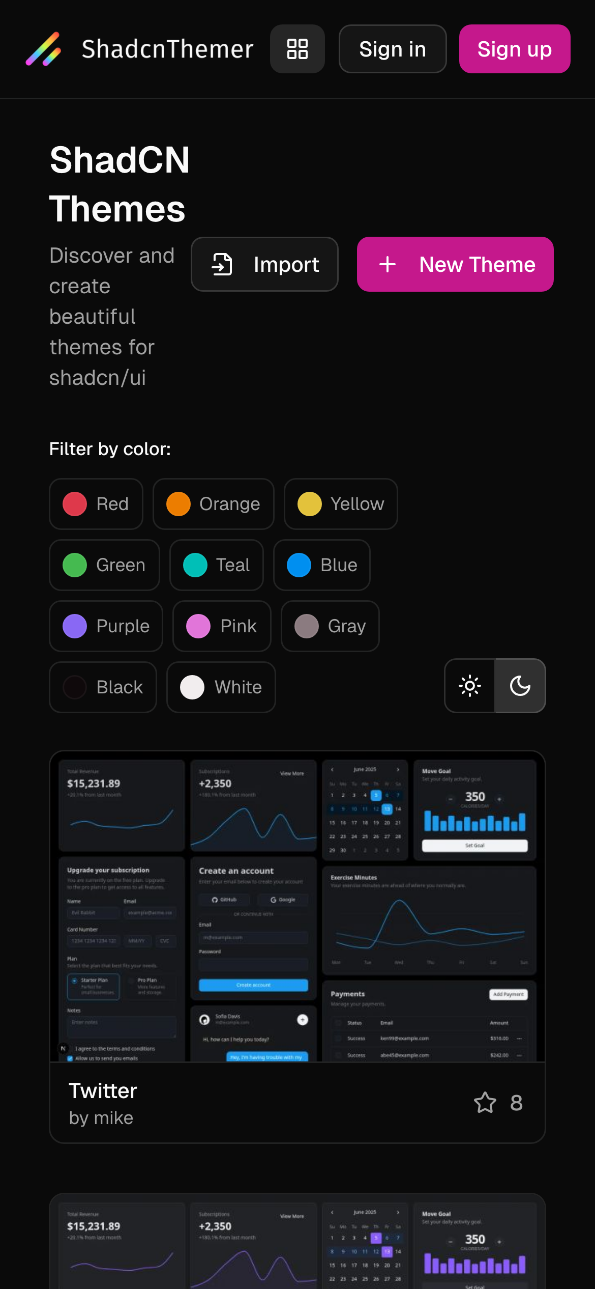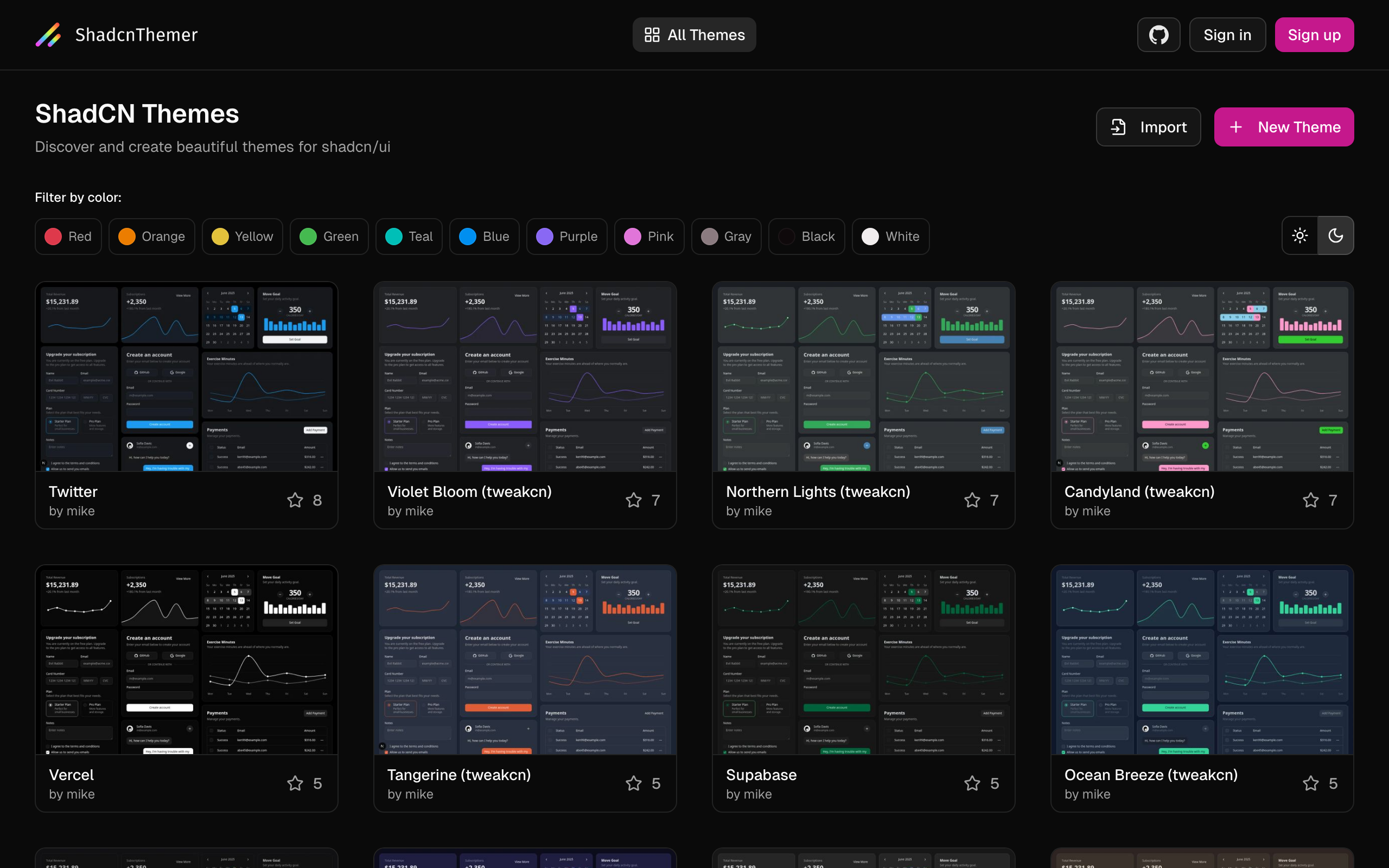 - Live preview of theme changes across all shadcn/ui components in real-time